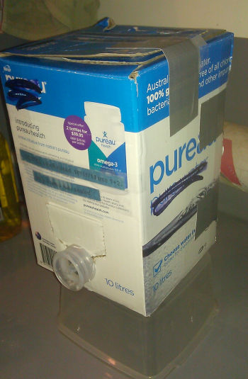 Noble's Pureau water cask has a mylar bladder in it. After drinking the water (rather than using it to make the Dektol which was already made up), I inflated the bladder by blowing into it like a balloon and waited a few days to see if it deflated under pressure . Thankfully it faithfully held its girth ! So then I pryed off the plastic tap thingy, transferred the recently mixed Dektol stock solution into the bladder, expelled the air, re-capped it, reshaped its cardboard box and stuffed it back inside then taped up the box. I expect little colour change of the Dektol after 9 months ! Previously my PET bottles with gaping holes under the lids let lots of fresh oxygen into the sol'n, oxidising the Dektol in a matter of a few months.