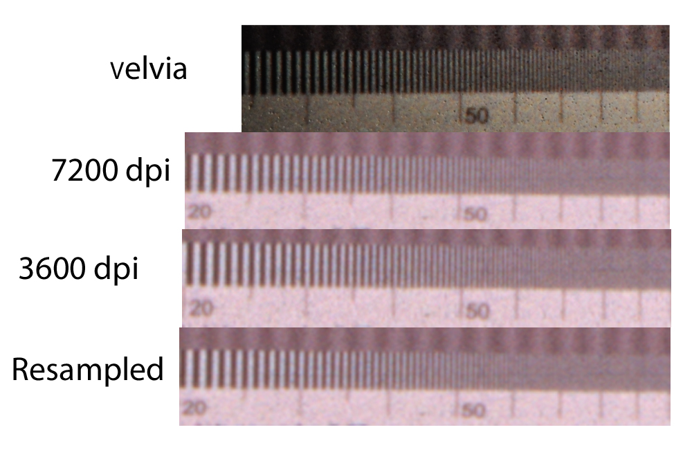 I'm not sure that the maximum is interpolated, I just think it's not as good as claimed. I get the same thing from the V700, the 6400 dpi scans are pretty much the same as the 3200 dpi scans and the Epson V700 has an optical resolution of 6400 dpi. I actually doubt that in real world images there will be much of an observable difference between the V700 and the Reflecta RPS in terms of resolution, but i'll post them when the Porta comes back from the lab.