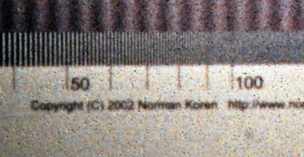 I should point out that the distance on the film/sensor between the 20 and the 50 marks on the images above is around 1mm. So when you look at it like that, all digital images/scans are amazing, though not as amazing as the raw film itself which is quite stunning. On a 12"x16" print (which is about 12x magnification from 35mm) that one millimeter would be stretched out to 12mm. Ok, perhaps a little rough if you're going to press your nose against it, but from a normal viewing distance I should think it would be fine.