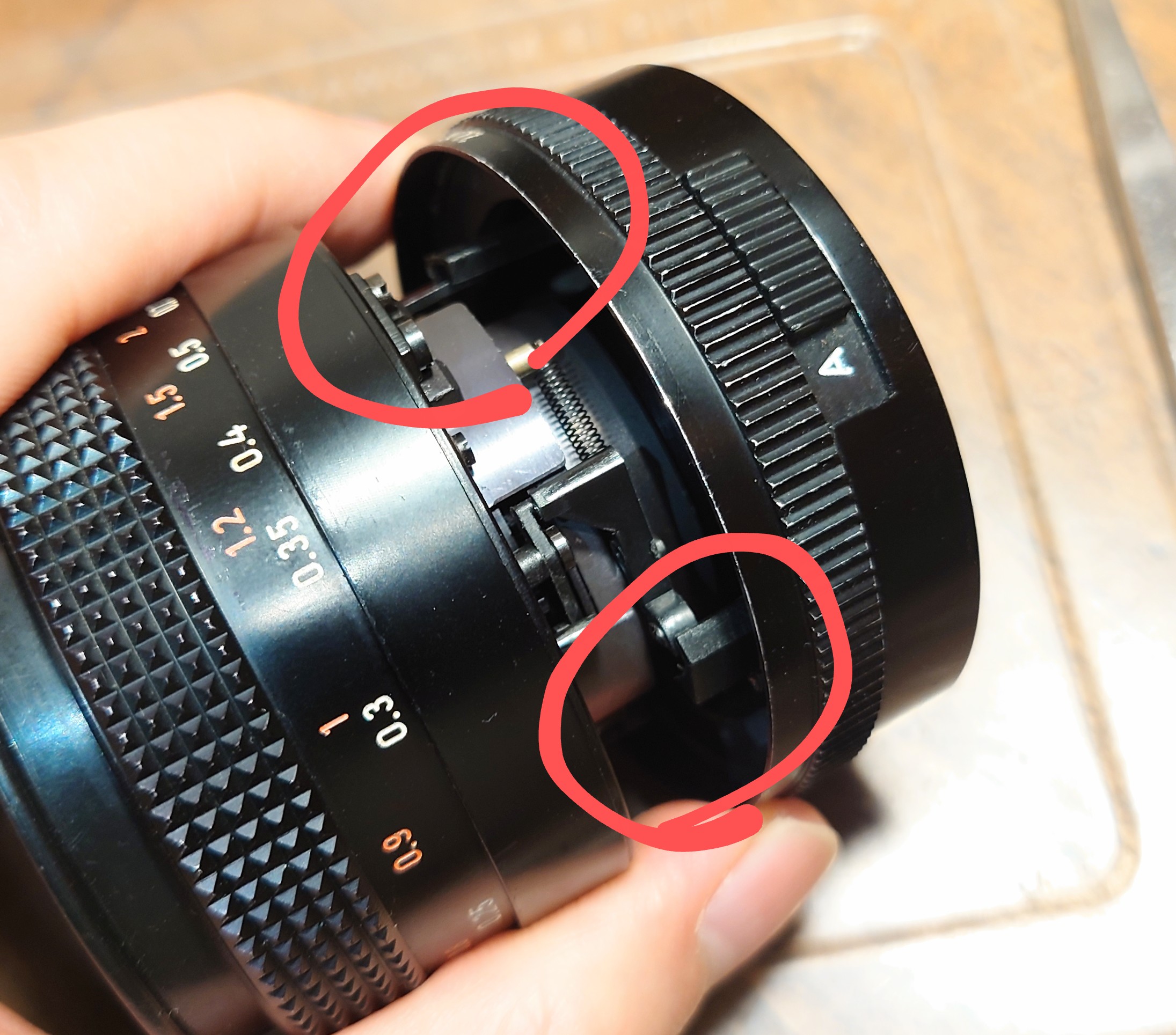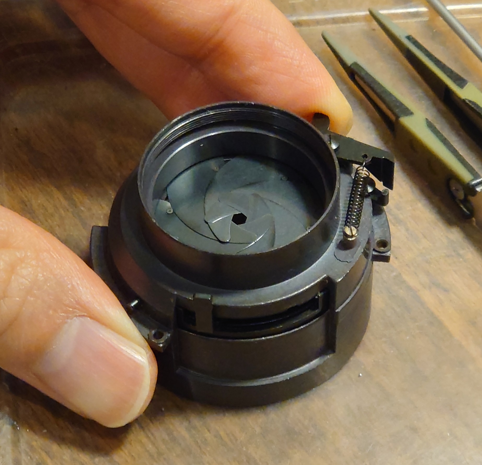 Please note that *Plastics* are used inside this series especially the aperture open/close mech. Servicing therefore needs special caution in order not to break or damage any of them. Don't use any aggressive solvents or lubricants, like acetone, acidic oils, lighter fluid/naphtha on servicing otherwise you might melted or deformed them . I only use graphite powder and never oiled no any of these plastic parts .
