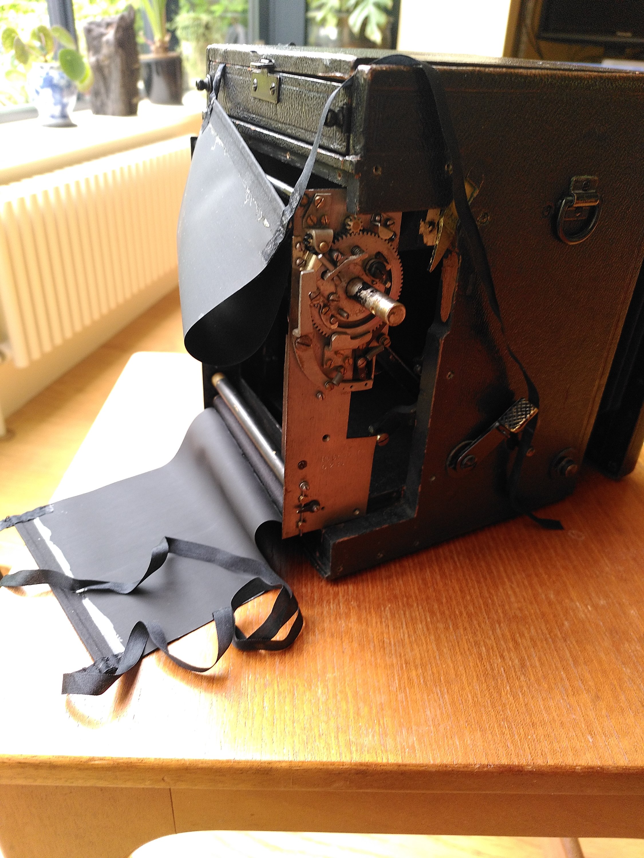 Camera shows signs of earlier work and possibly adaptation. I have every reason to believe that was while it was still in use. It's generally in good condition, with a massive (possibly not original) lens I am keen to try.