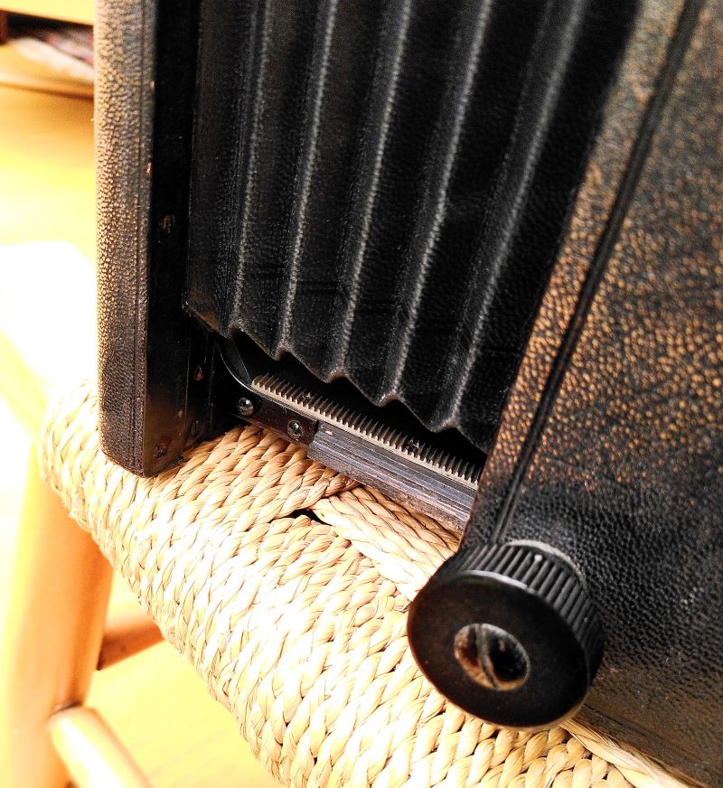 I'm 60% confident I can build and fit new shutter blinds and get them to run. Problem is I cannot see how the 'speed dial' on the outside of the leather covered box will ever connect with the cogs and gears that control the two shutter blinds. I'm worried something is missing (either camera hardware or my brain software)