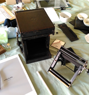 My Thornton Pickard Ruby Deluxe (Quarter plate) is back in pieces for me to fit new blinds. It's now clean. I have the shutter fabric, silk ribbons, replacement screws, lots of notes and hand-drawn diagrams from disassembly and, hopefully, most of what I need. However, I've reached a 'not sure why I'm doing this' and 'will it actually work' point in this project.