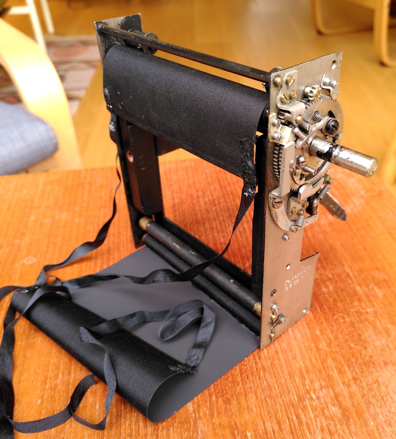 Got the ribbons sewn on, and cleaned out the sprung tensioning rollers ( as per @Ian Grant suggestion's on another post). Was surprised at how little grunge came out of the rollers in the first warm soapy water. Resisted the temptation to take them apart to see how they work! Dried them out with Isopropyl alcohol and they are back in place with a couple of drops of sewing machine oil.