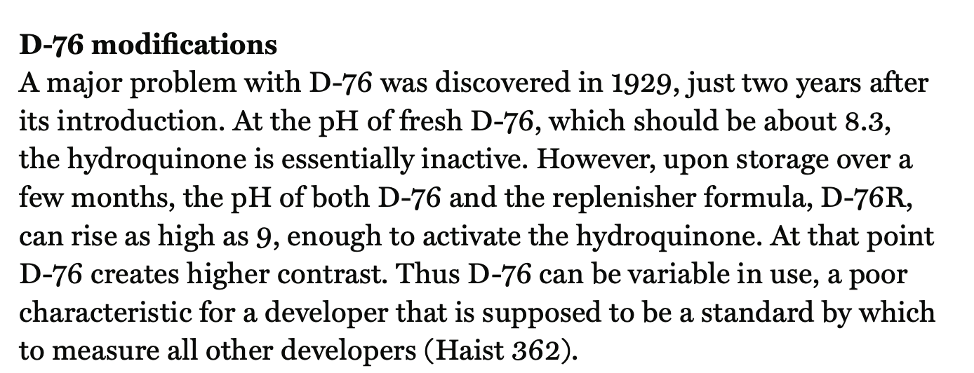 I would add that Haist couldn't even refer to the original Eastman Kodak Research precursor to D76 correctly, so clearly lacked full knowledge.