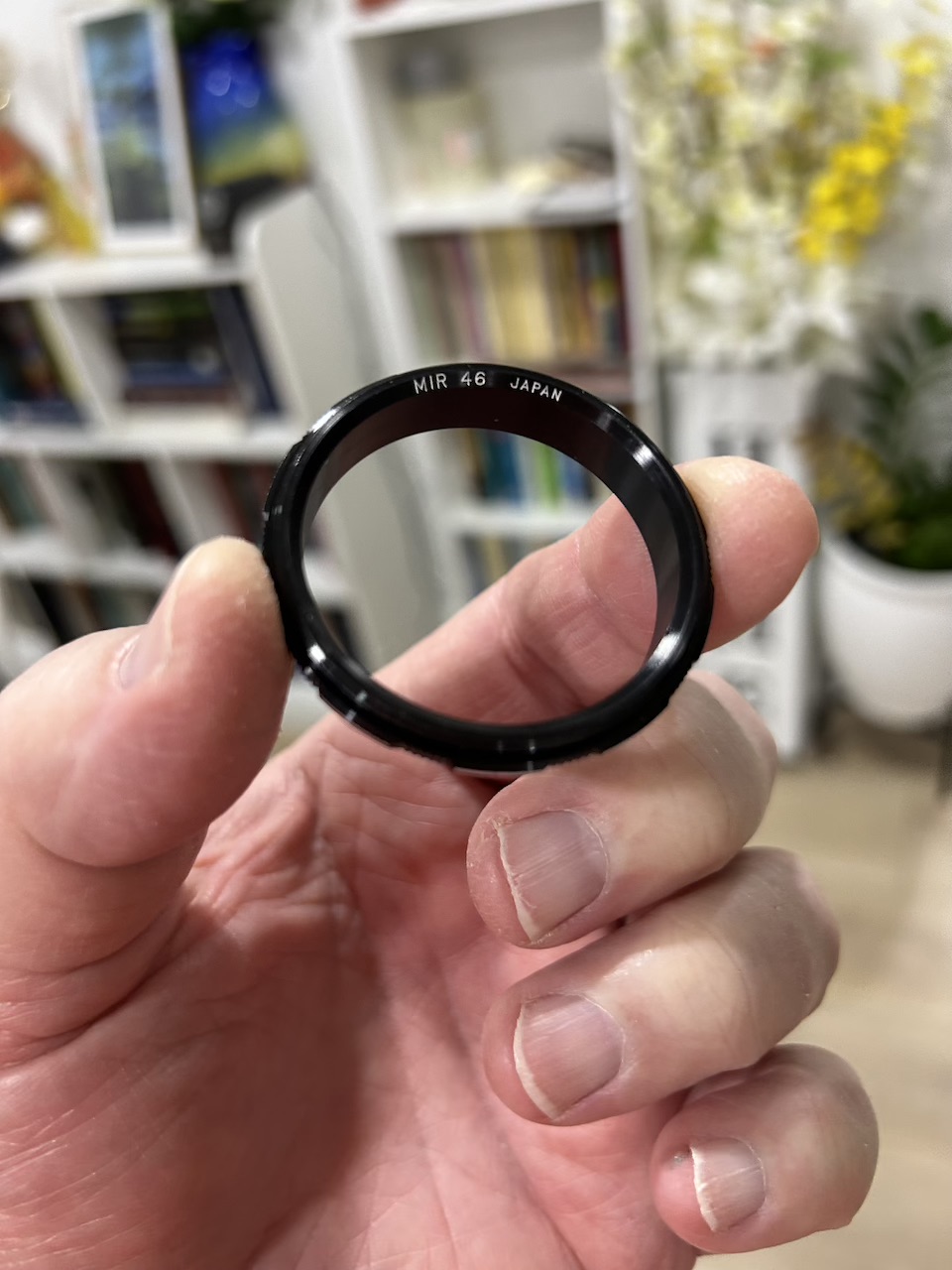 This reversing ring has a 44mm thread to mount to the older Miranda screw mount bodies and then a 46mm thread to attached to the front of the lens. New-in-the-Box and nice quality - made in Japan. Uncommon today.