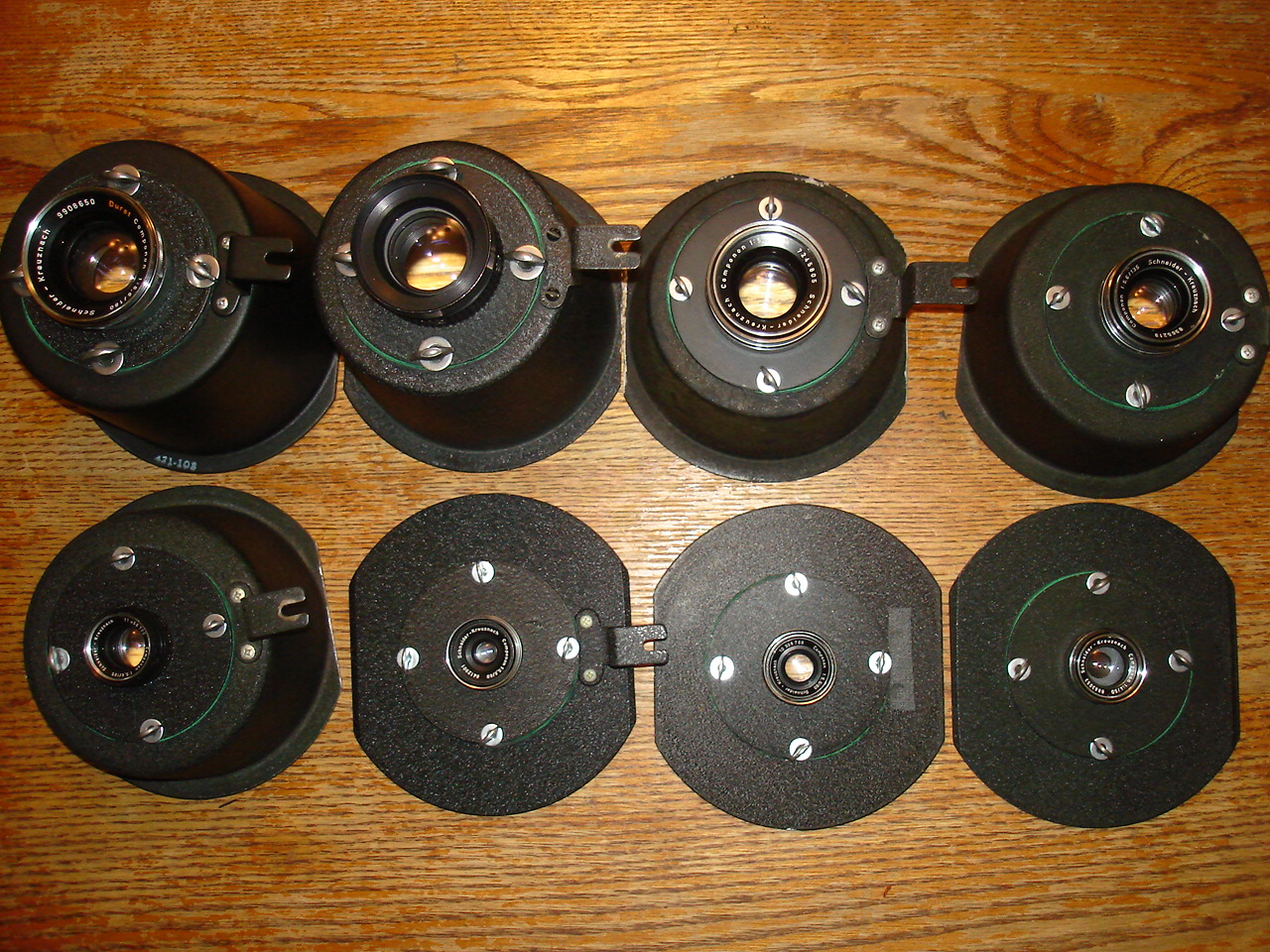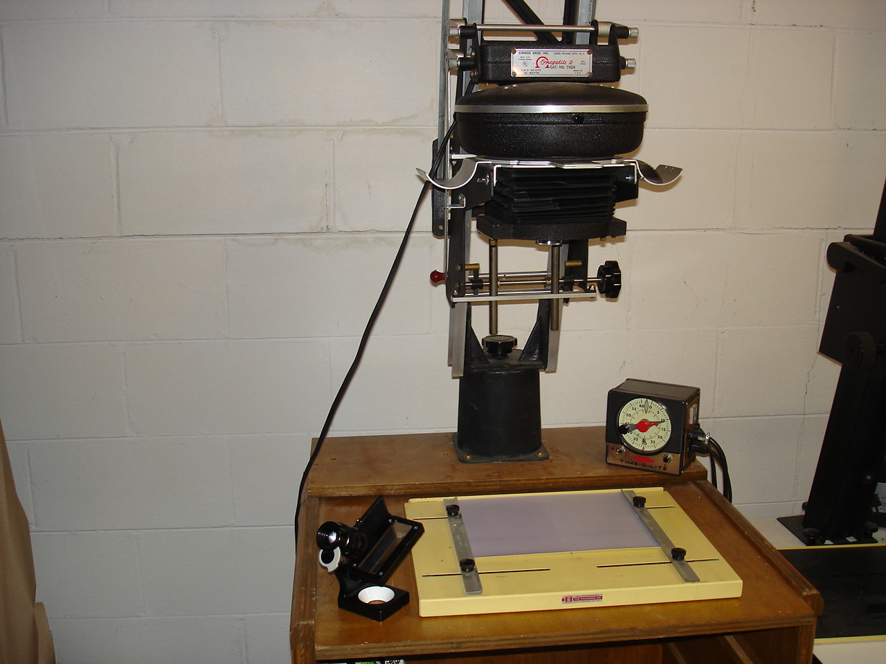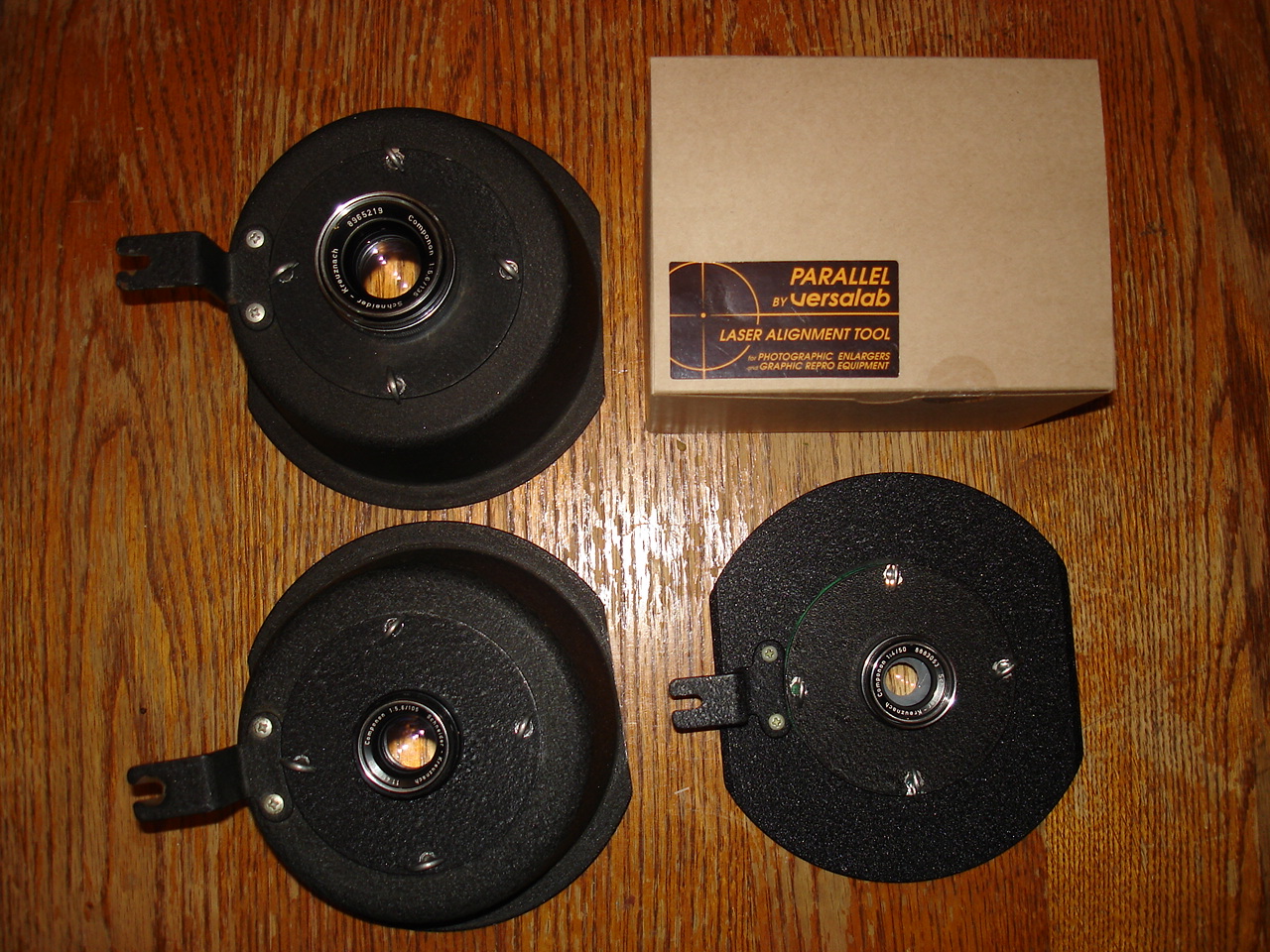 I'm interested in getting this going again, so I started reading up on it. And I just purchased a Versalab (Laser) Enlarging Alignment tool, for speedy and accurate aligning of all three image planes. Here's my enlarger (darkroom is now in my basement). I use the Peak/Omega Focusing Magnifier to examine the grain in the negatives. It will be fun to get this going again. It's very dusty. Next project is to add thumbscrews to the lens cones, so the lenses can be easily aligned.