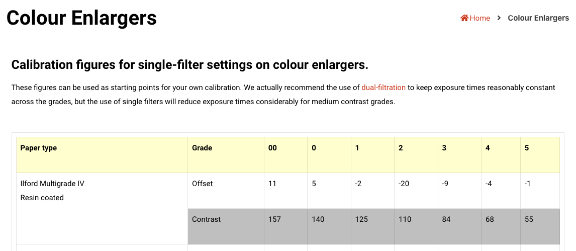 It states in the manual that the device has a built-in calibration for Ilford Multigrade RC 1V .
