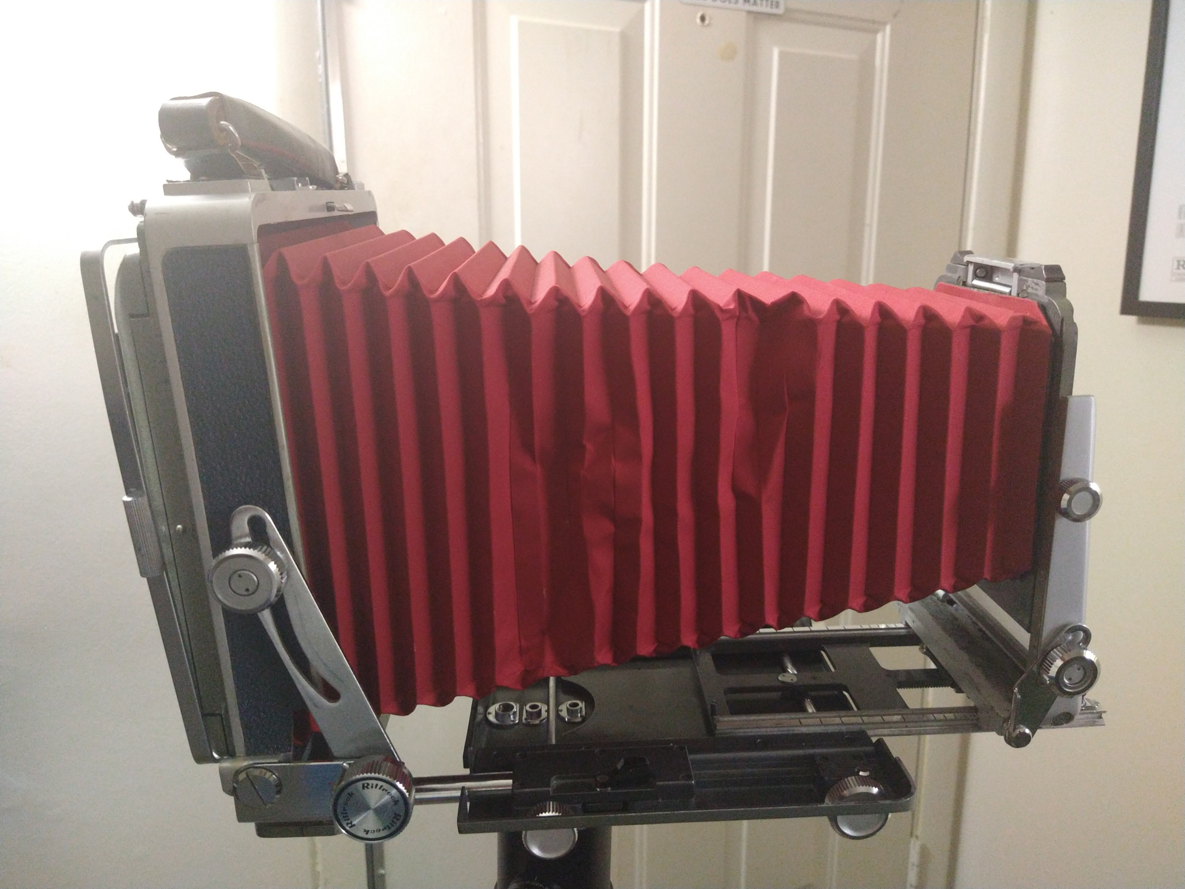 The bellows had to wrinkle to extend fully. It is light-tight.