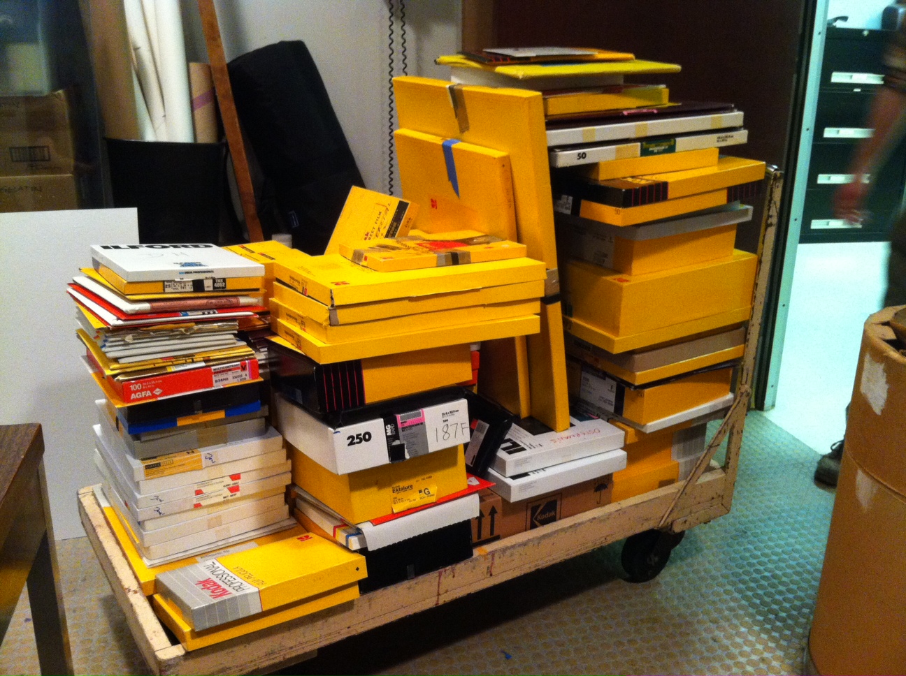 The attached picture is a hand truck we filled with old paper/film. Some might be usable, a lot of it is great paper for fixing out, but in whole it represents a bunch of silver! Thinking about filling a kiddy pool with fixer and reclaiming the Ag to finance some of this..