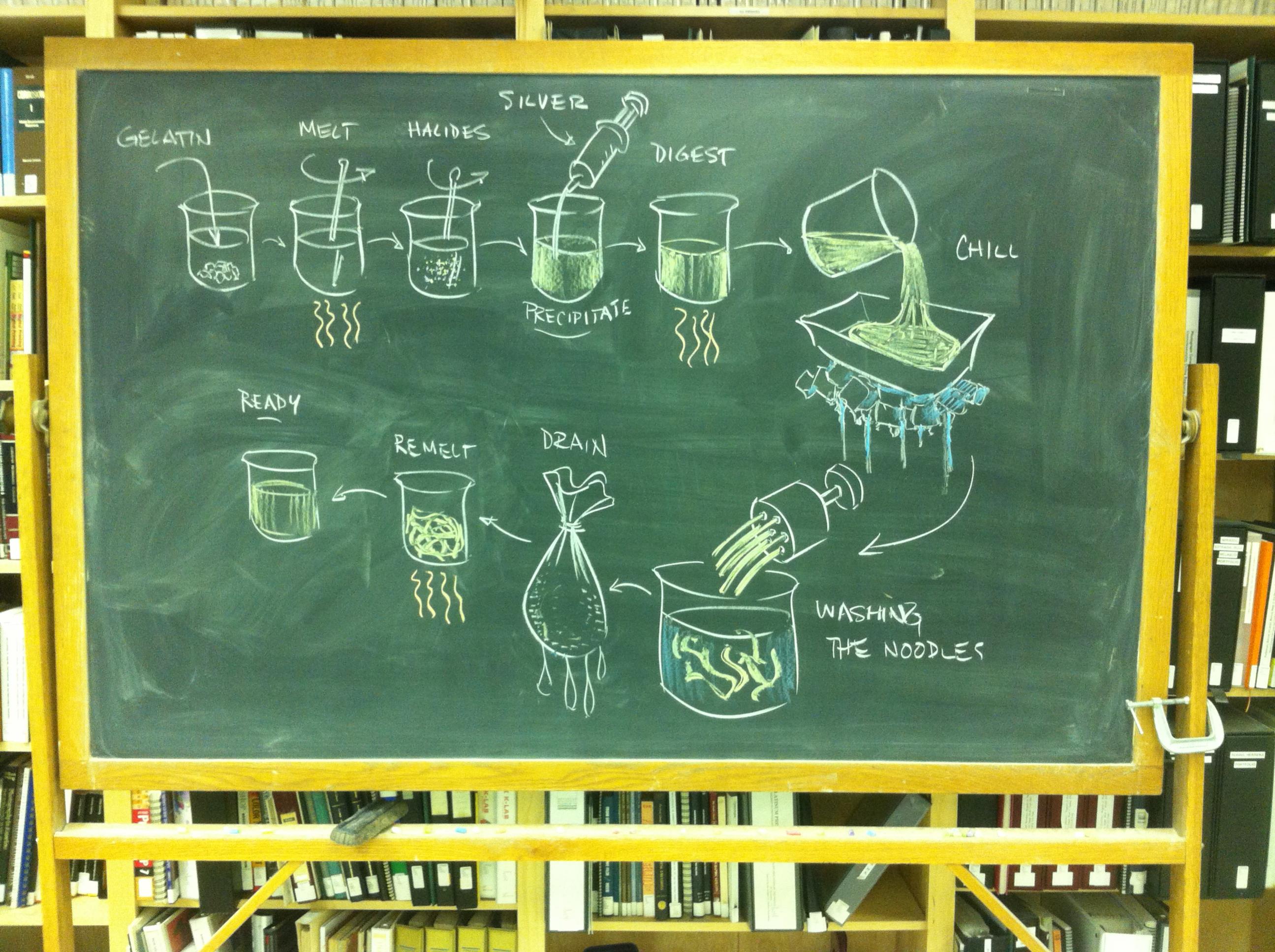 Given my workshop schedule for the past few years, I've had no time at all to shoot my own work or to conduct any new research here at the museum. Having Chris here with the time to experiment with gelatin technology will make it possible to try a lot of different formulas and see if we can coax some interesting results. He is actually the reason why we included gelatin bromide emulsion making, coating and processng in the 2013 schedule. My plan is that he'll be teaching with Ron and me; we need to pass the teaching baton. His first chore....make several batches of clean working emulsion so that he's comfortable with the process and technique. It's a tall order, but we'll get him up to speed soon enough.