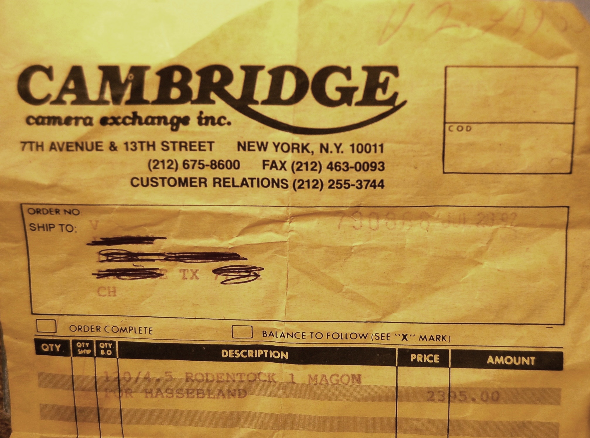 The 1979 receipt in the photo below from Cambridge is for $2395.00 PLUS $20 shipping for the lens with 3 disks, lens hood and ND filter.. (That was a pile of money is 1977...One 1977 dollar is worth $3.77 in 2021 dollars.)