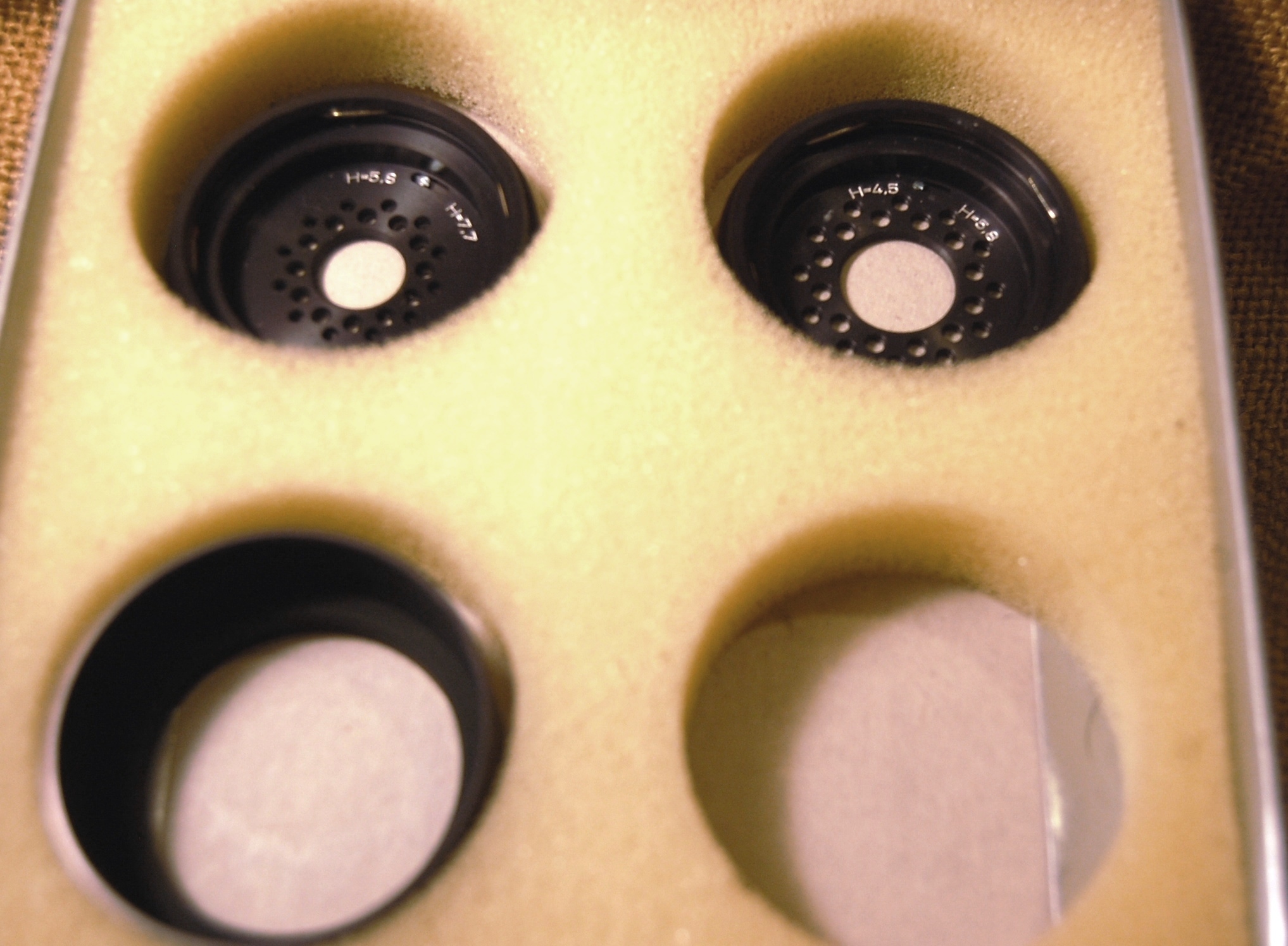 All about mint In original box, with original purchaser's receipt. The empty spot in the box is for a 3rd diffusion disk (not included). I thought these might fit my 200mm Imagon, but no such luck. They're just a wee bit too small for the 200mm.