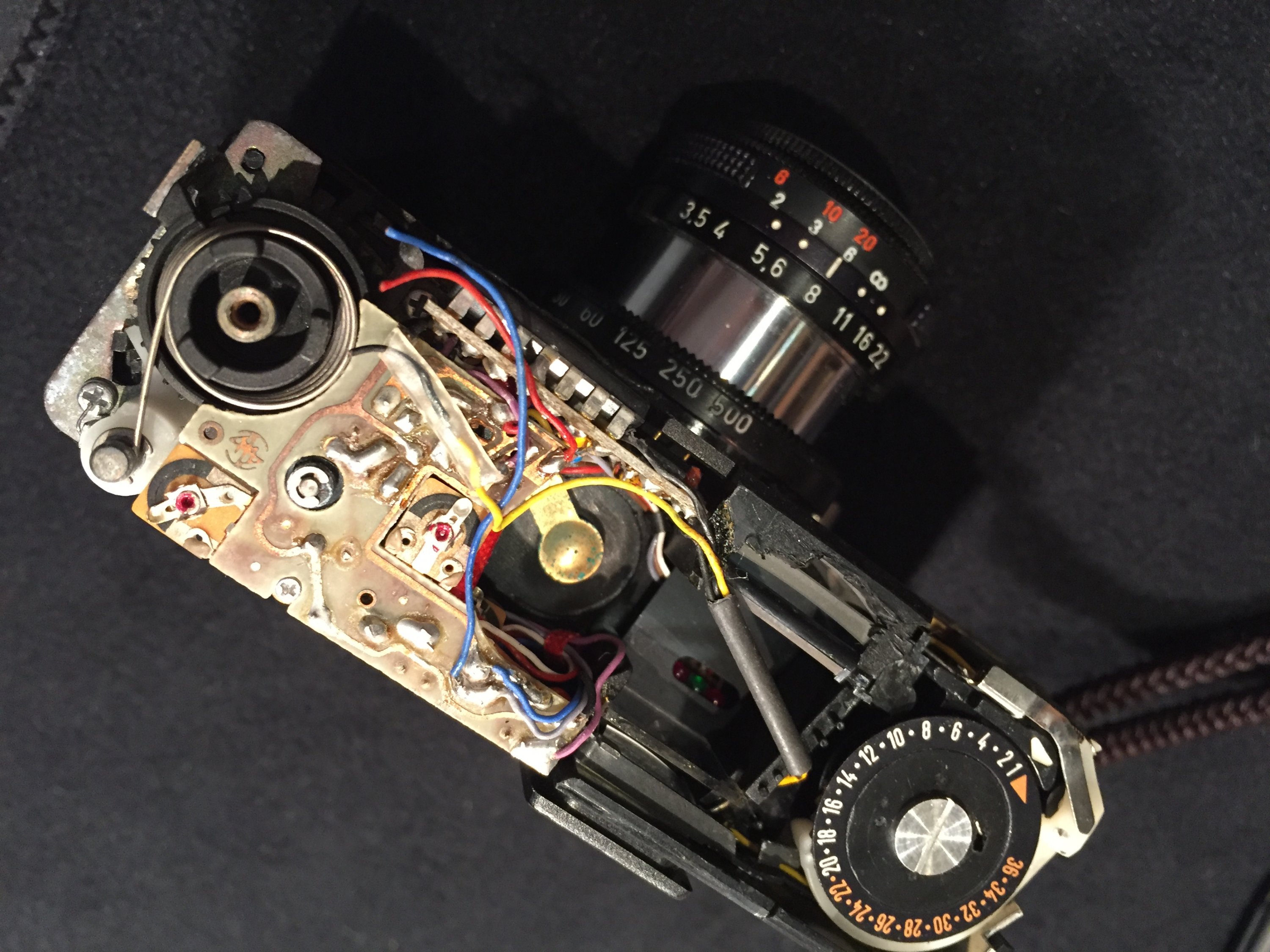 I obtained this somewhat battered Rollei 35 LED at the camera show about ten years ago. Someone had dropped it a few times and the frame counter did not work. The cover was dented in two places and the ASA label was missing.