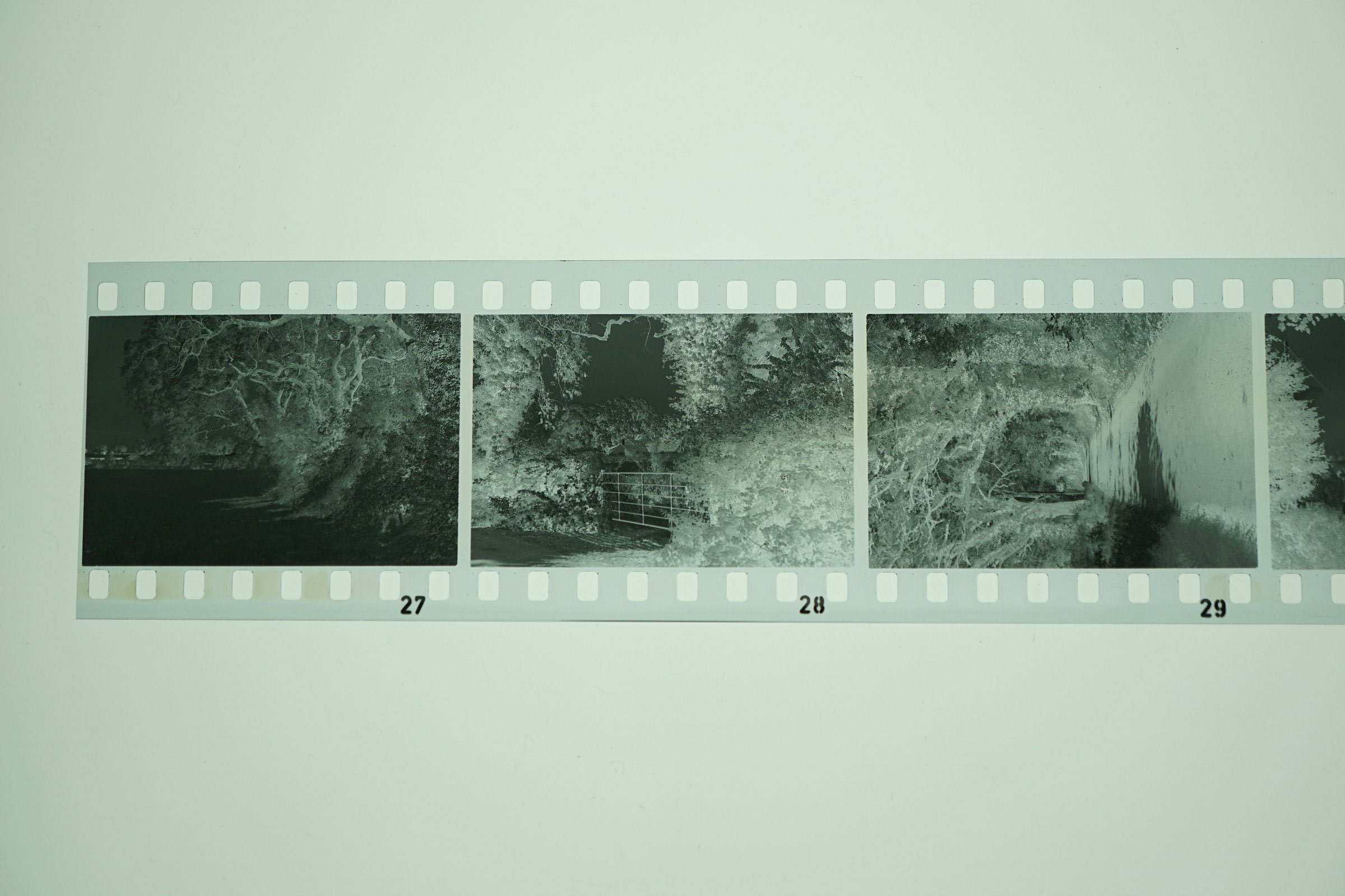 Back on the question of the film's speed, I've been going more or less by the book, treating it as ISO 400 and applying a filter factor around 8 with three different Leica filters - an A36 IR, an E39 IR and a Summitar Rd (dark red). Visual comparison of the filters shows differences, the Summitar being the most opaque. But they are all fairly old and can have altered over the years.