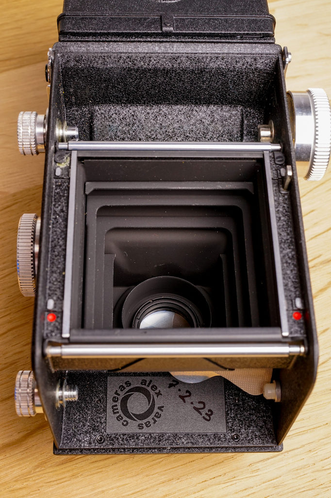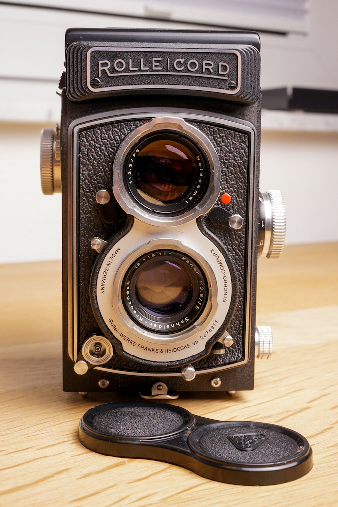 The first camera is a Rolliecord Vb "White Face" that he sent to me some months ago, I serviced the shutter, collimated the lenses (both), got rid of small friction in the focus knob and I have tested with film myself.