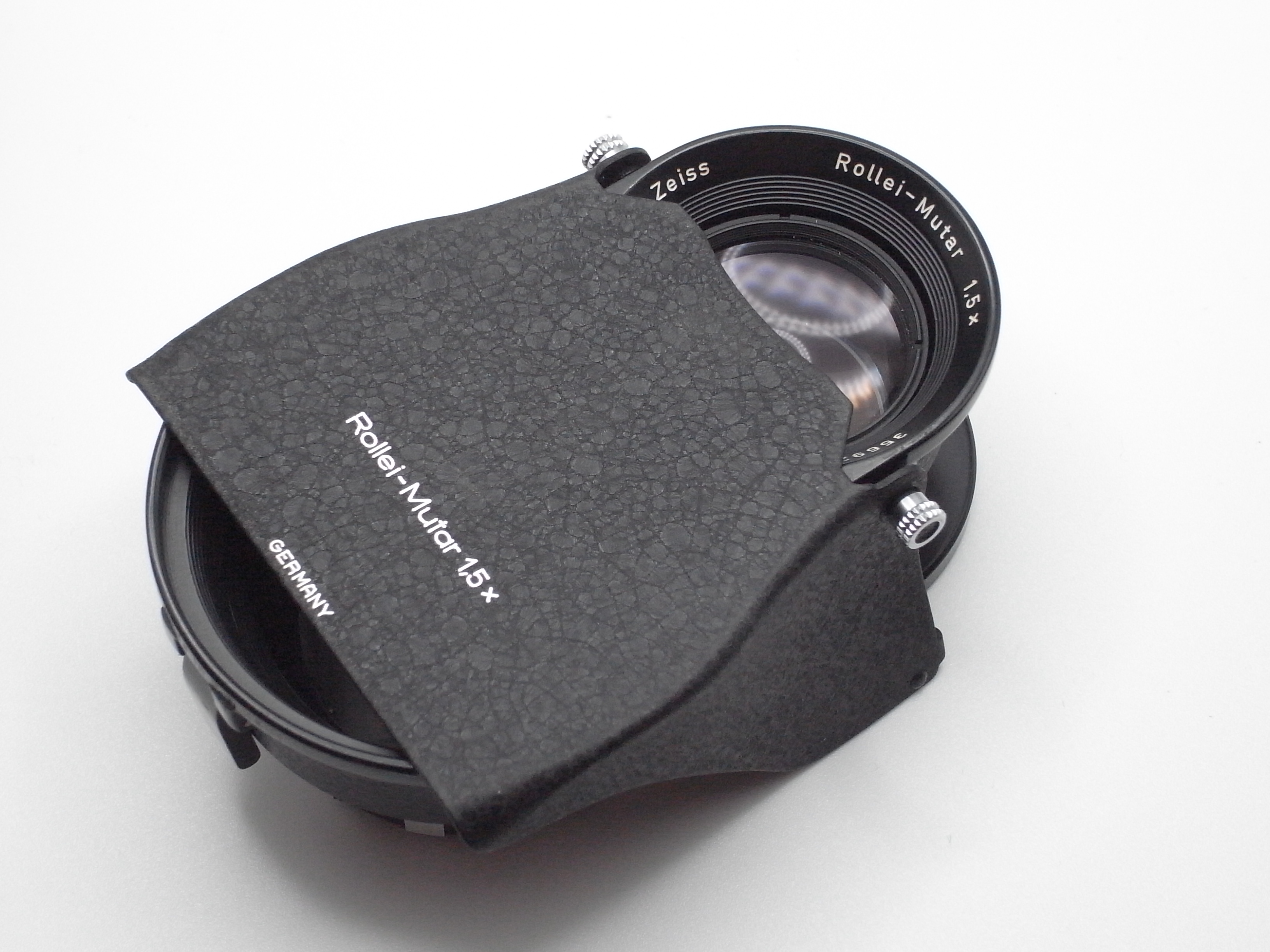 1. Rollei-Mutar 1.5x telephoto lens with detachable hood and leather case. Excellent plus condition with no issues. SOLD!