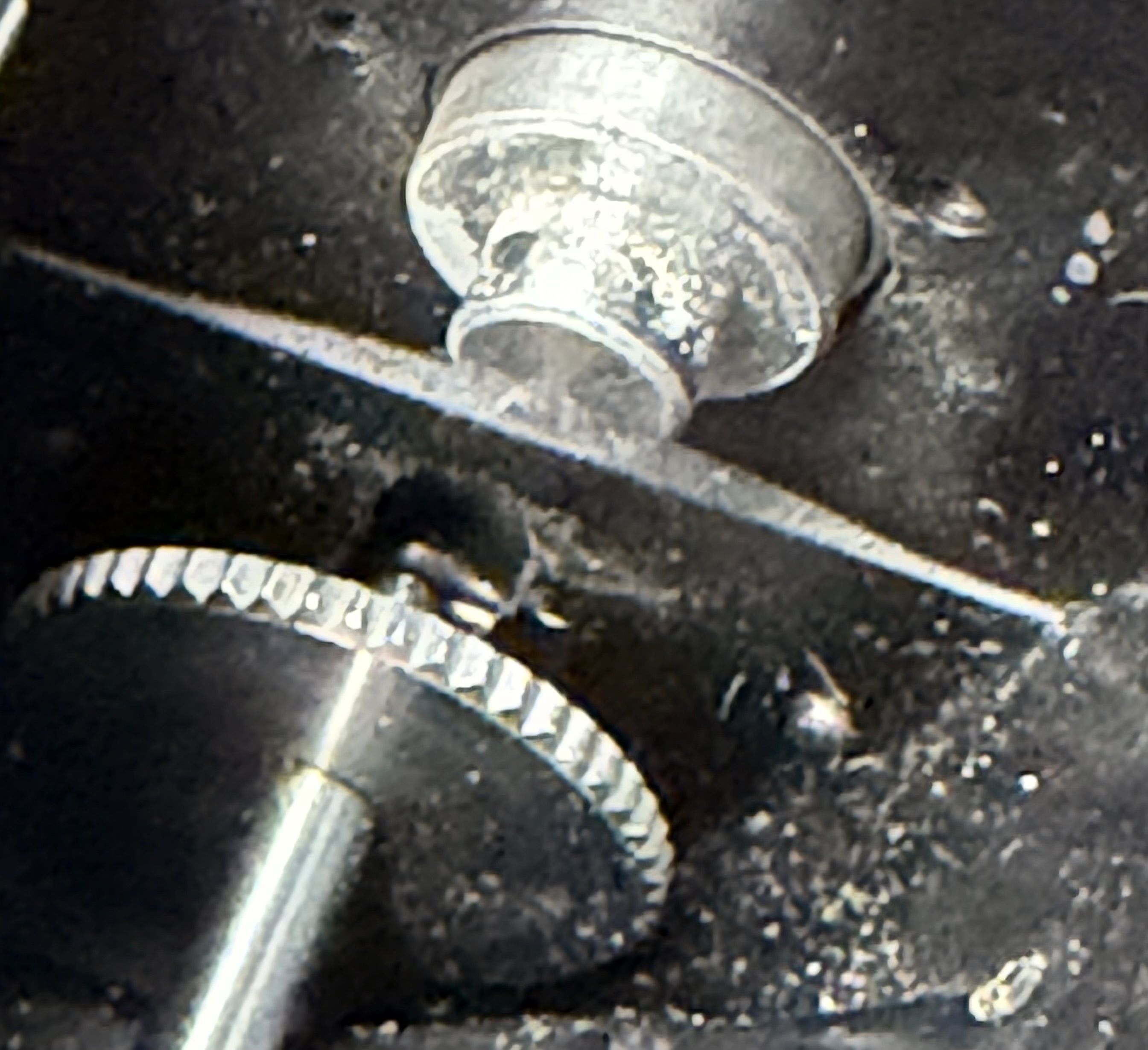 Two points- When a spool is in the top chamber, the initial question about the thin film gearing, and you use the winding lever, the silver gear may not move. Put a little pressure on the spool end above the gear while winding and see if the gear starts rolling. Ideally it will roll with some pressing on the spool. If it rolls without any pressure, all is fine.