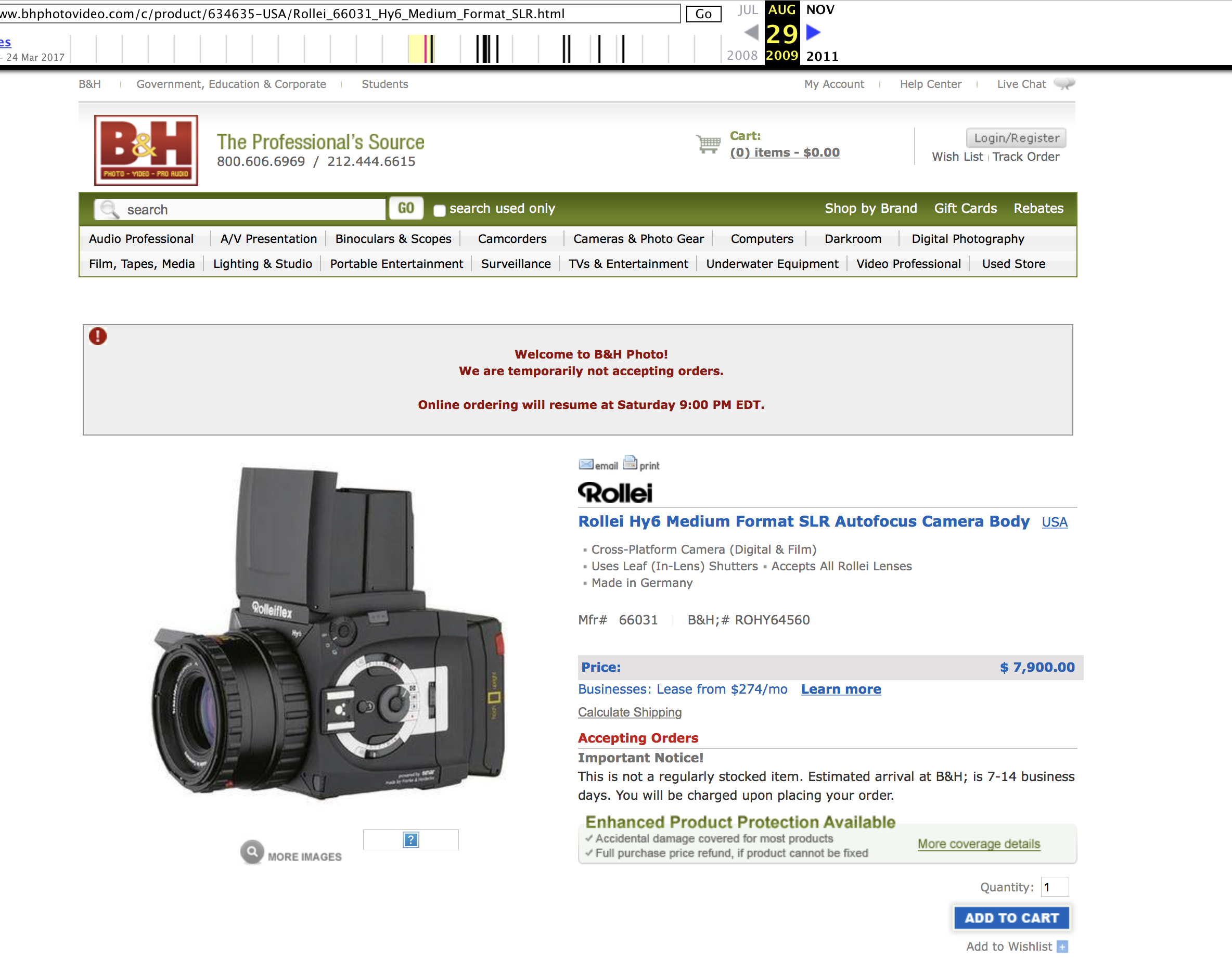 One thing that pushed me to get the new Hy6 now was this old B&H ad for the same camera Eric sells new. It was more expensive in 2009 than today. Eric is great to work with, communicates great with e-mail.