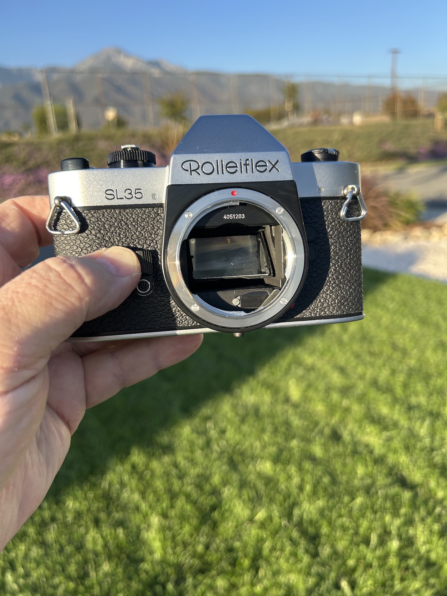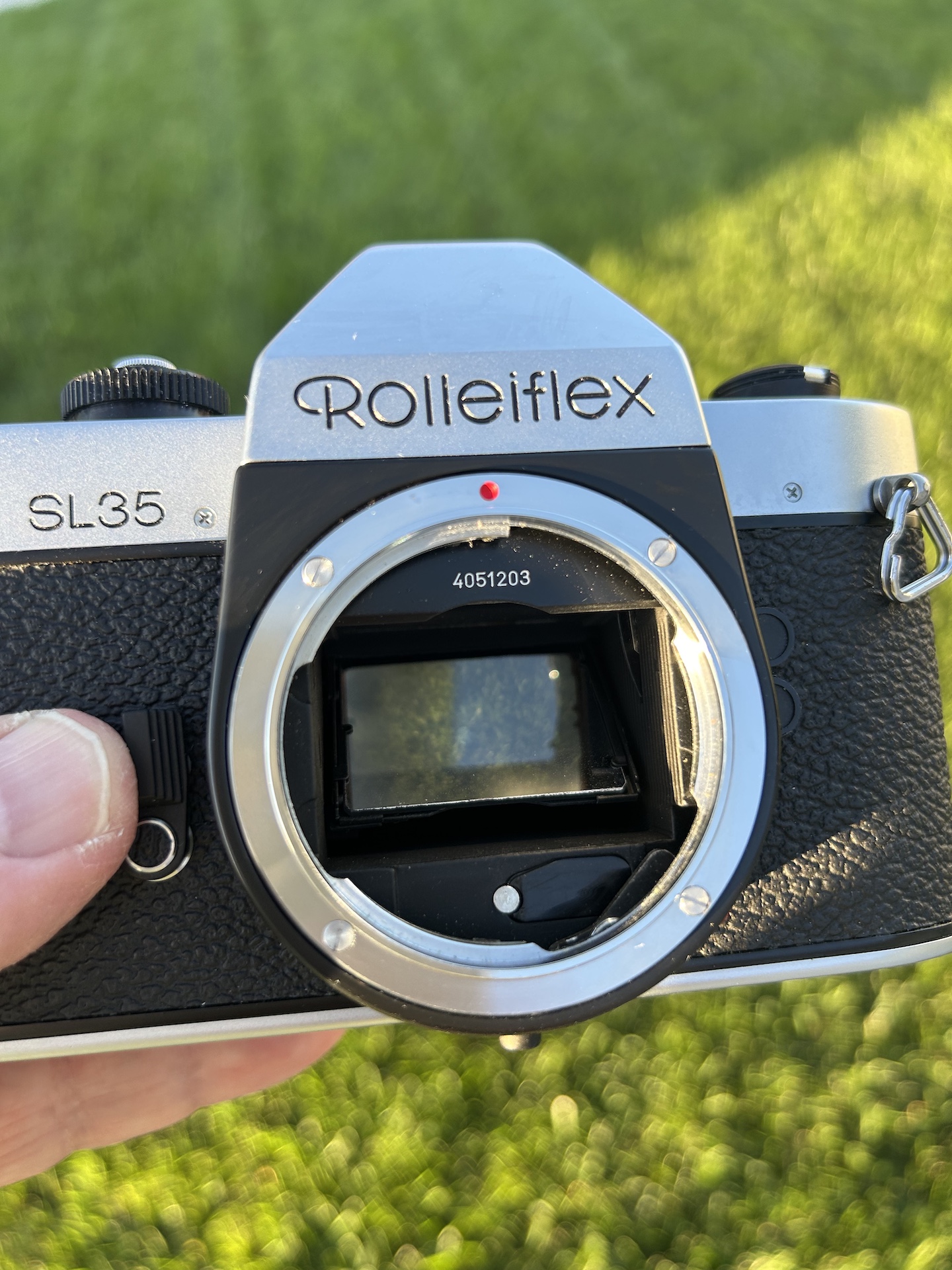 This camera is working mechanically and optically as it should. The meter responds to light when used with a 1.5 V 625 format alkaline cell, but is off by perhaps three stops. Of course this is not the correct battery for this camera (it should take a 1.3 V Wein cell which I don't have. However due to this large discrepancy I will not guarantee the meter accuracy (I rarely use or need meters myself, so I personally don't care).