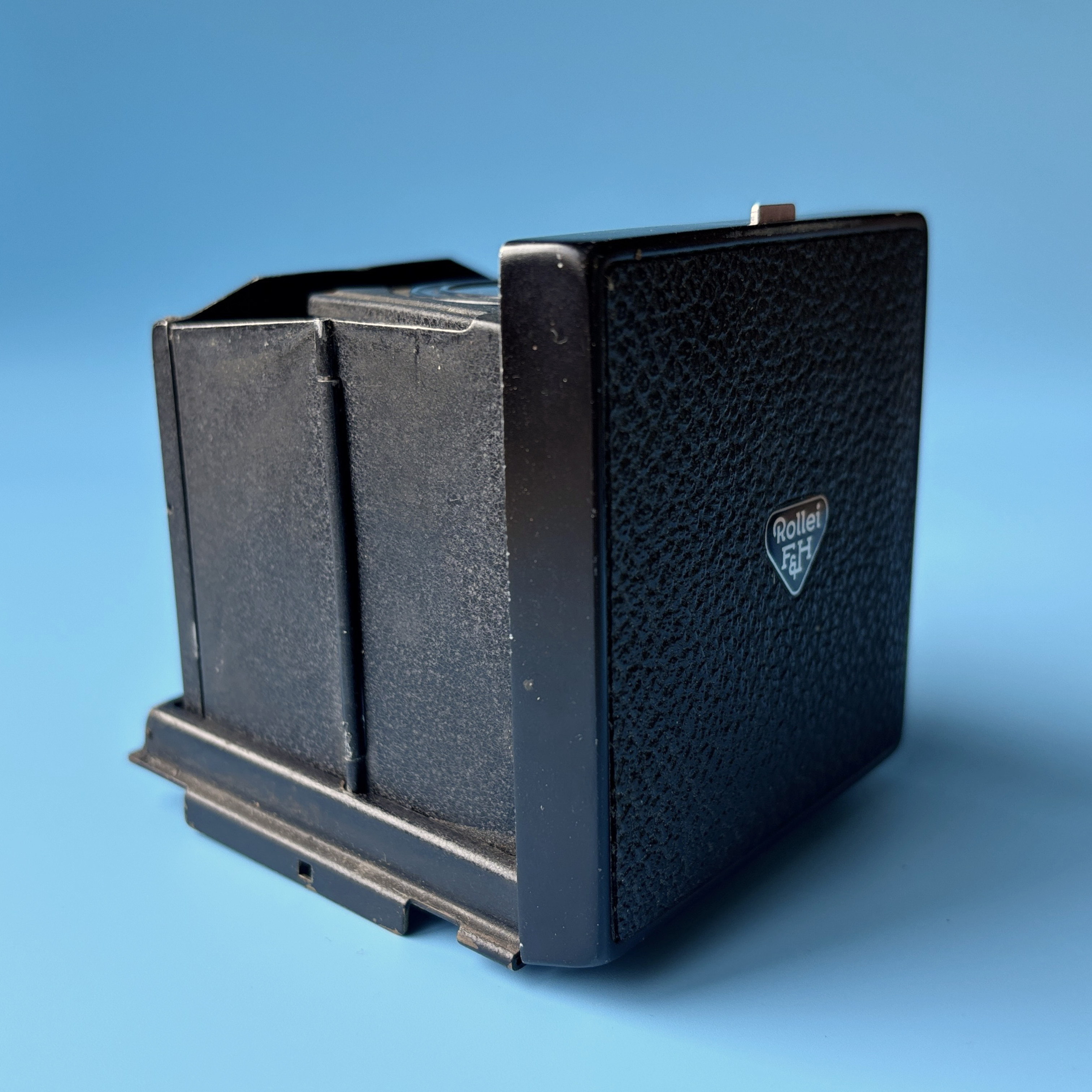 For sale is a Rolleiflex SL66 waist level viewfinder for your classic Rollei. The condition is fair where one side of the viewfinder shows some paint scuffing and slight rippling. However, the rest of the finder is in very good condition with very little paint loss on edges, all operations (spring loaded opening, closing, glass flip, etc.) works great. Most importantly, the magnifying glass is nice and clear without any haze or major blemishes to be noted.