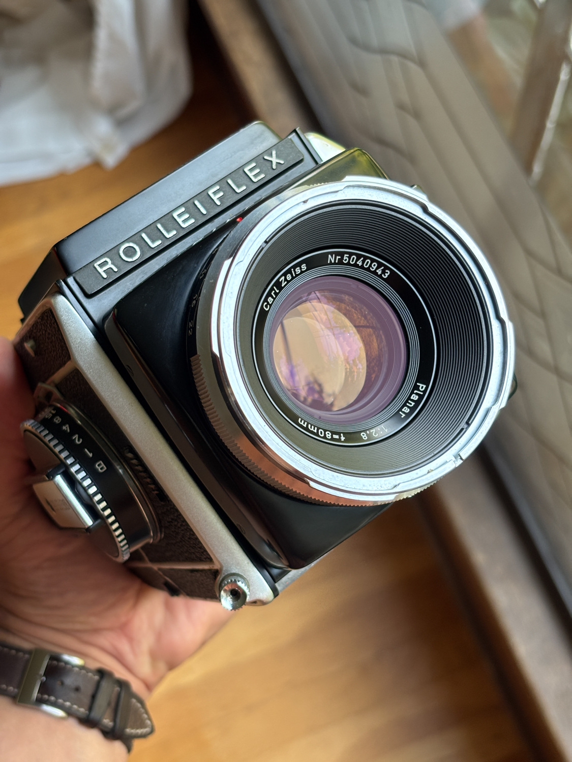 1. Rolleiflex SL66 kit, including camera + 80mm 2.8 lens + lens hood + film back + yellow + orange + R1.5 filters + additional film back. The kit was overhauled by Harry Fleenor about a couple of years ago ($700 overhaul cost), and it works perfectly. In addition to the photos included, other than the inevitable fact of life that dust is, the lens looks very clear when held against a window. The original focusing screen has a few scratches, but it's perfectly usable. I have a spare Magicflex screen I can include for free as well. Asking $1100 for the whole kit net to me. I'll cover shipping to the US or Canada.