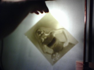 Here's the results of the first try with Rollo. I'm pleased with the stain. Should increase a bit with as it dries. the bad snap shows more contrast than there is(the eyes aren't that dark), i'm mostly looking at the stain, which is very PMKish. Yippee! I'm gonna print one of these tonight.