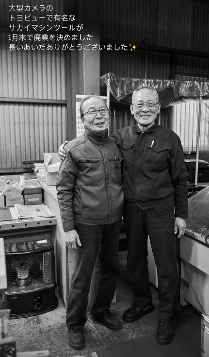 Sakai Machine Tool, famous for its large-format camera Toyo View, has decided to close its business at the end of January. Thank you for all that you've done over the years![]()