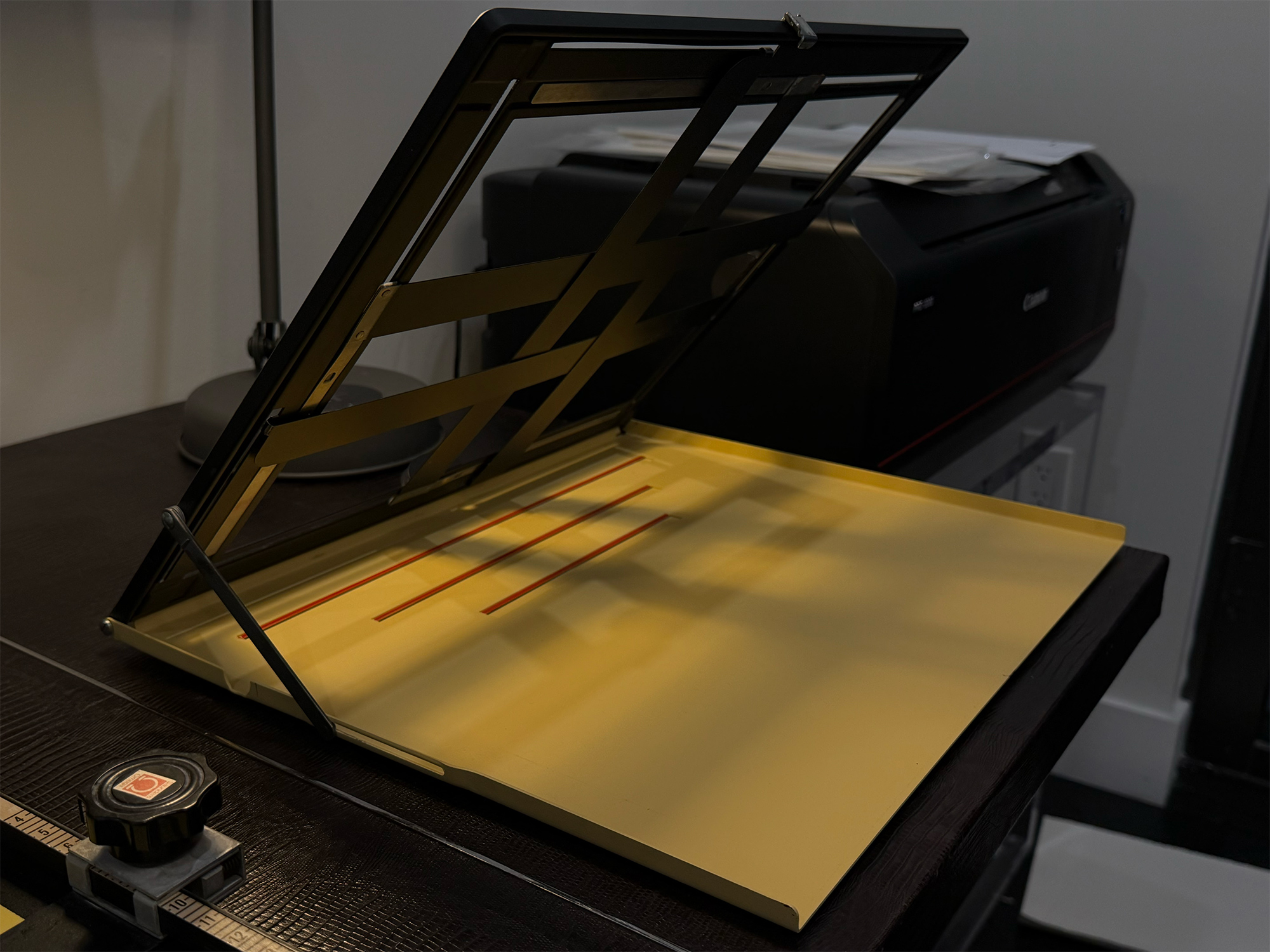 The 11x14 easel is in beautiful shape. It’s clean, well cared for, and functions smoothly. The blades glide well, though not quite as effortlessly as when new, and alignment is just slightly off — easily correctable. Cosmetically, it’s one of the nicest examples you’ll find for its age — no corrosion, no cracks, and minimal wear.