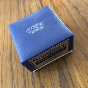 The 105mm Schneider I have is a much smaller, older version that I picked up online - no "bubble" just its original box and front "push on" cap.