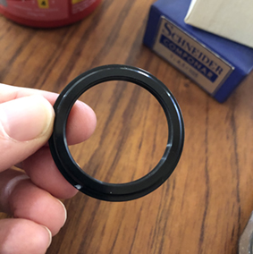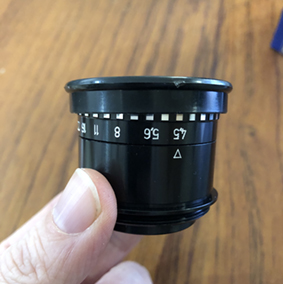 The specs for the Schneider lens mentions that it takes a 43mm lens cap and that the back is a 39mm thread. I went to measure my rings that I had for my two old lenses, an El-Omegar 50mm lens and a Fujinon-ES 75mm lens that went to my old Omega B66, and converted the inches to millimeters and I appear to have 44.5mm rings. These are too big for the back of the Schneider lens.