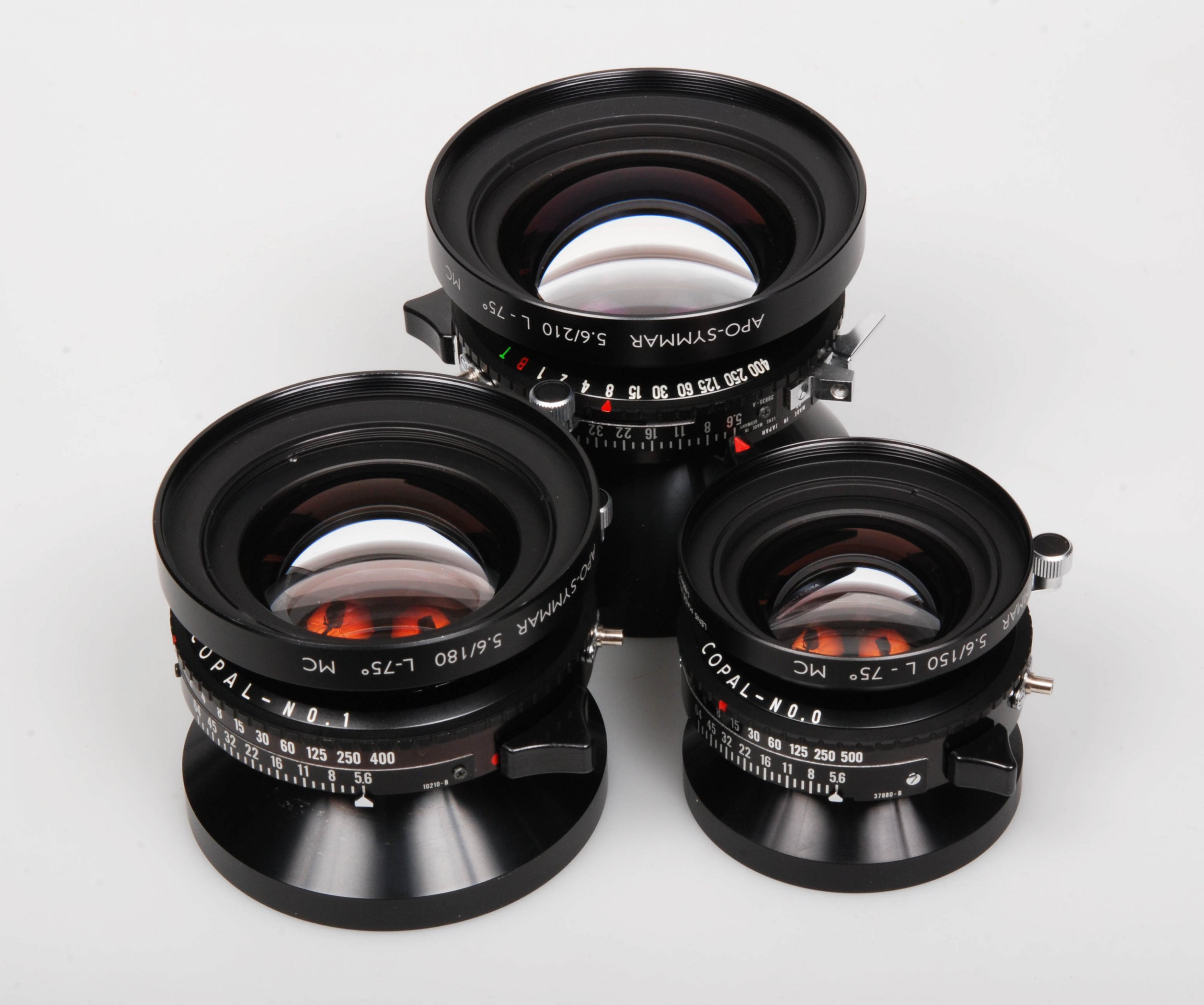 All lenses are in late black Copal shutters, with click-stop apertures for accuracy.