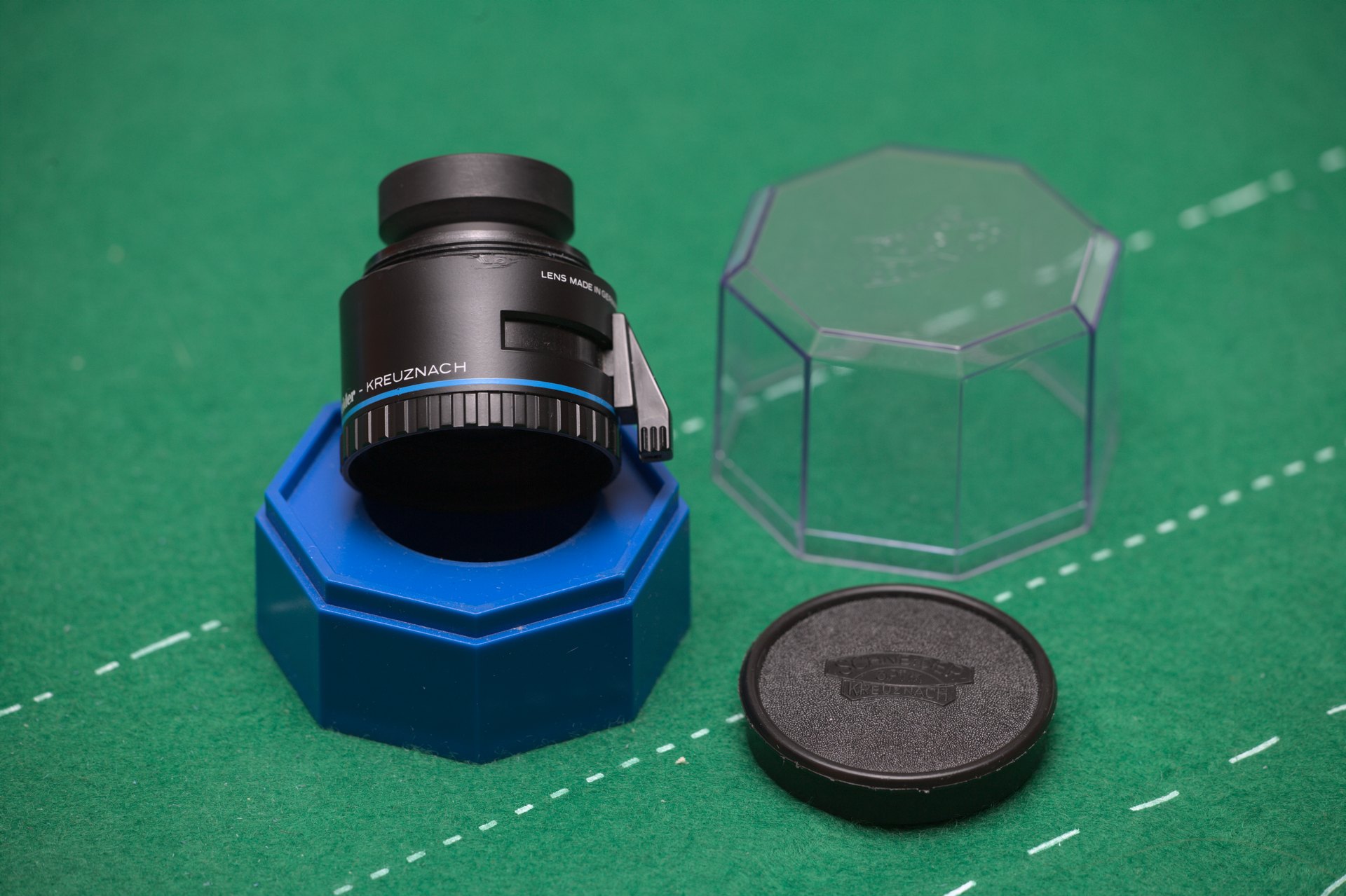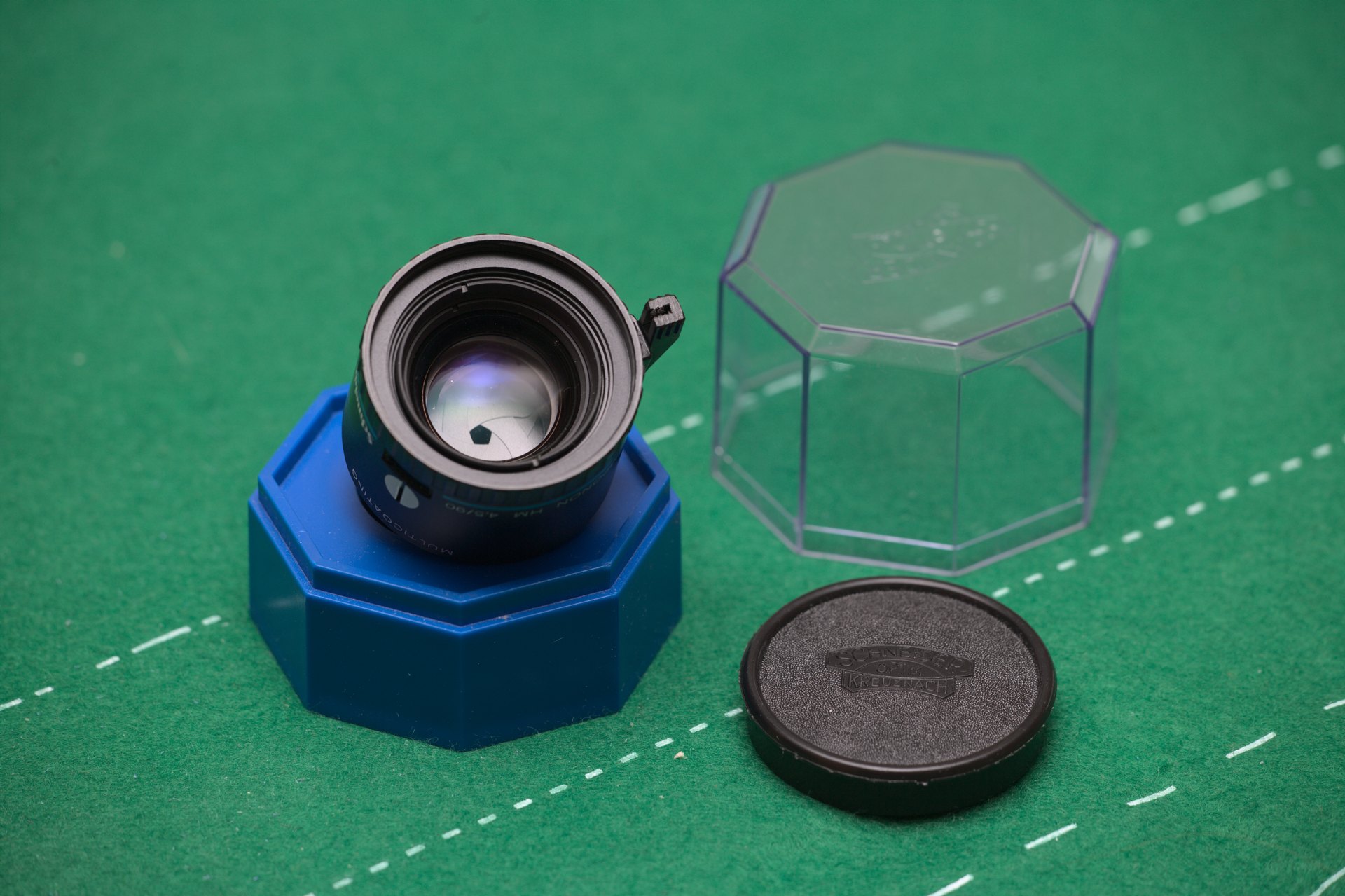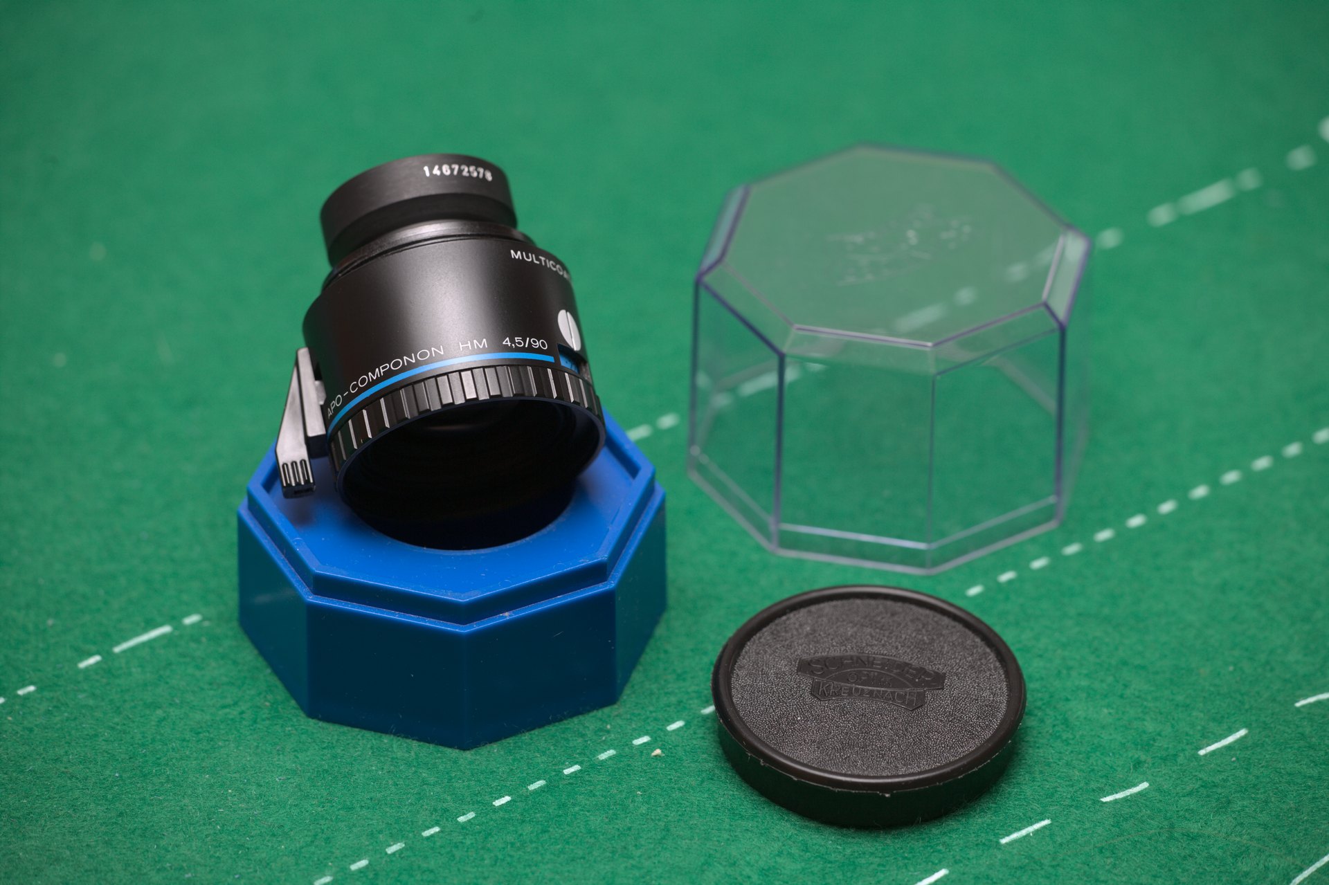 Giving up my darkroom. This Schneider Kreuznach APO Componon HM 90mm f/4.5 enlarging lens might be of interest to those who shoot medium format up to 6x7 and appreciate high quality enlargements. The lens has some cosmetic marks at the edge of the barrel, see pictures, but is otherwise in excellent shape with very clean glass and aperture.