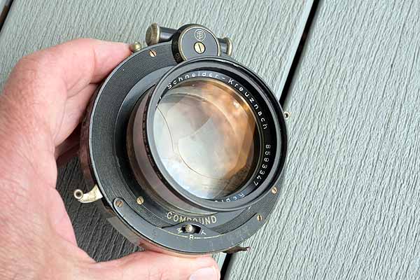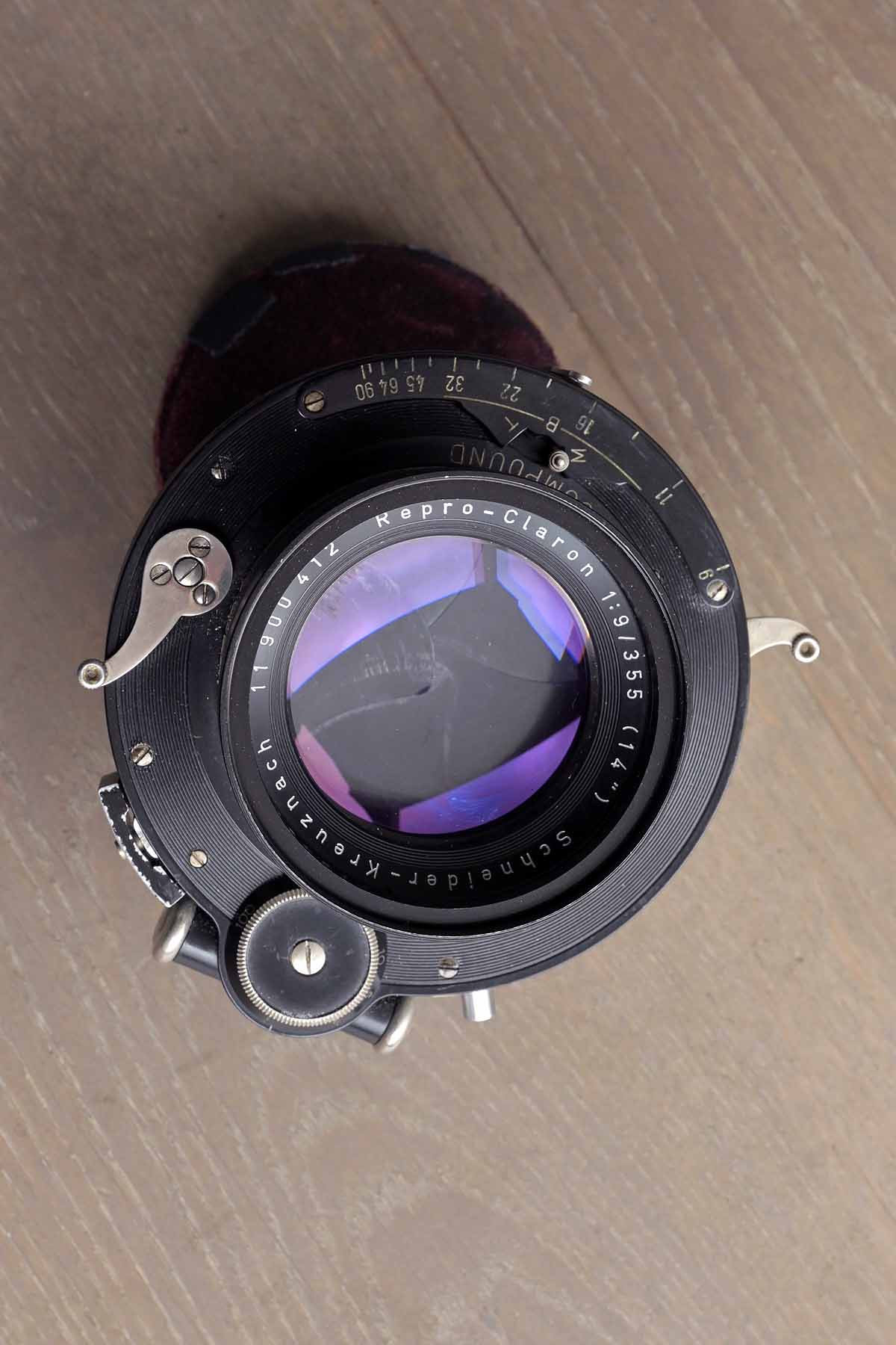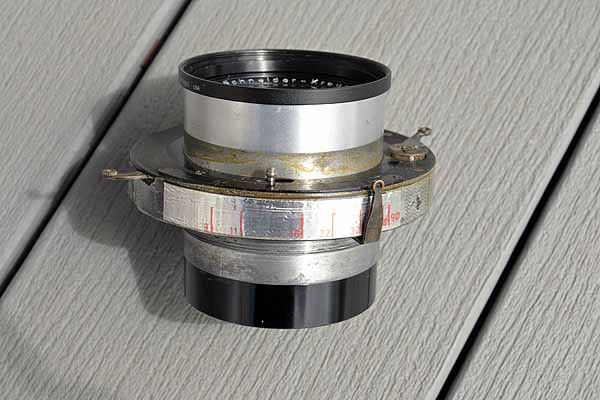 2. Schneider Repro-Claron 16 1/2" F/9 in compound shutter. The glass looks to be coated (can't tell whether single or multi) and is beautiful. The shutter is ugly but sounds OK by ear and has a home made F/top scale. Price is $439 or BO plus shipping to your location.