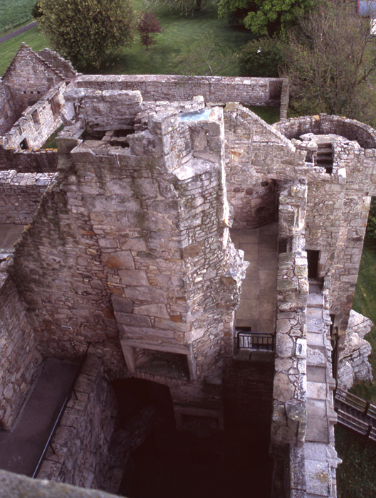 When I was in the UK in 2002, it seemed like every exit off the highway had castle ruins. My favorite was Tintern Abbey in Wales, but there were cool ruins in Scotland, too. I don't remember the name of it, but there was one somewhere between York and Edinburgh. I don't know if it was Craigmillar, but that name seems familiar (I did some googling). If I can find a photo, I'll post it.