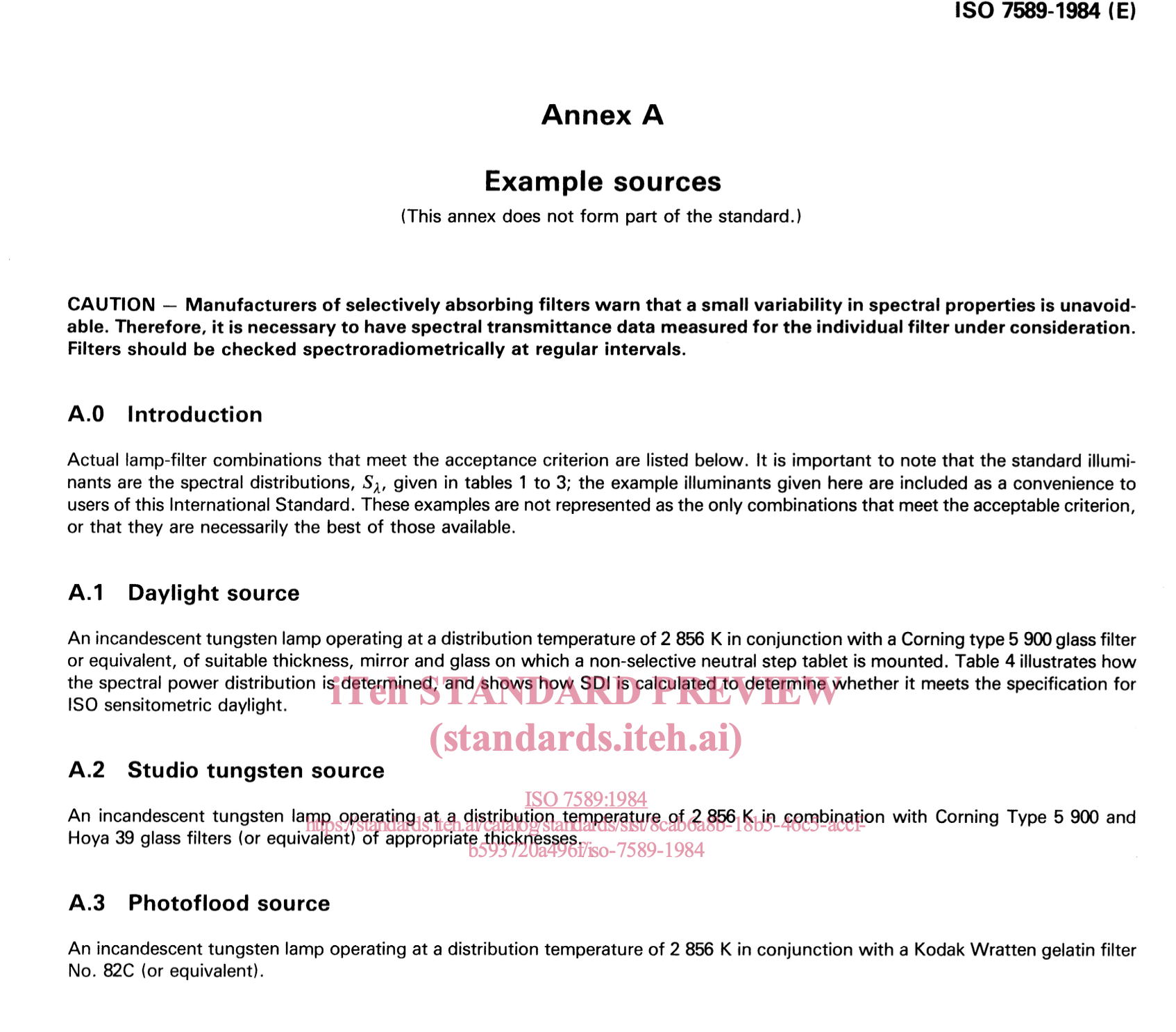 The ISO norm, as far as I know, wants you to filter the tungsten halogen light with a chemical, in order to represent daylight color temperature.