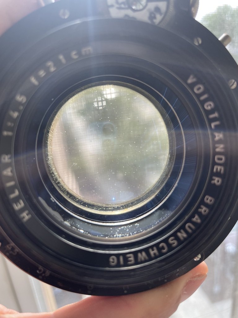 It has a minimal amount of separation on the rear element, which has no affect on my negatives.