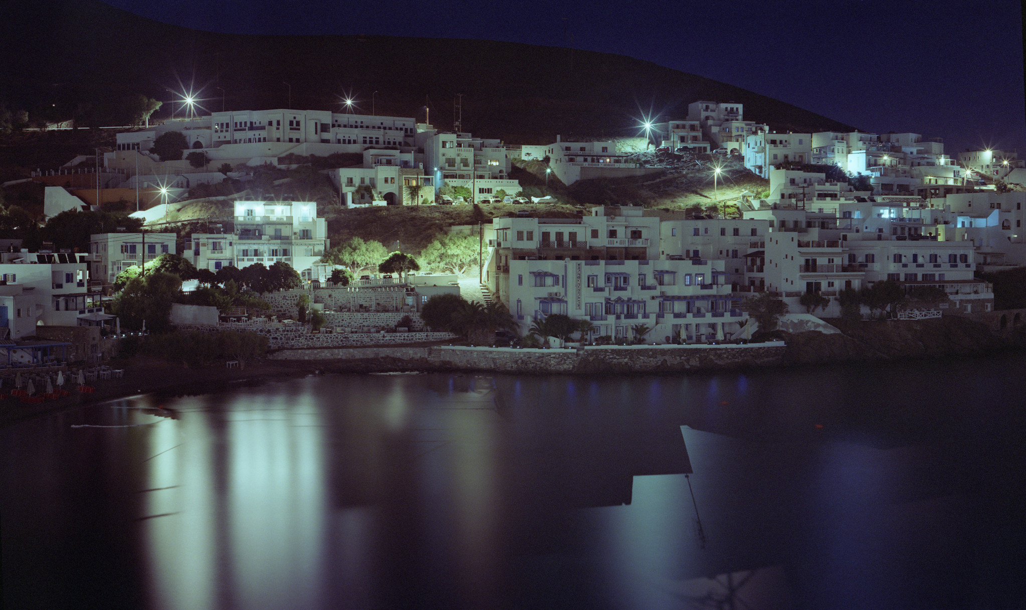 July 2023, Voigtlander Bessa (1938), Voigtar 11cm f/4.5, Fuji Pro 400H, f/22, 2-10 minute exposure with the camera on T mode sitting on the top of a wall. Astypalaia, Greece