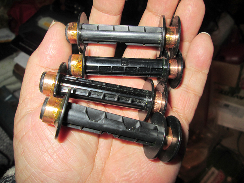 I made some special reels for loading 46 mm films to shoot on any MF cameras that can use 220 films. I have cold stored quite a few 100 ft and 200 ft long rolls of 46mm Kodak 400NC and 400VC in my freezer. Those films are now long expired of course. I figured a way to use them on my Pentax 67-ii. I hope it will yield 7x4.5 panorama shots for me without using and cropping my 220 films. I will need to cut in a darkroom the right length of my 46 mm film out the 100/200 rolls and use leader and trailer paper from 220 films that is trimmed to 46mm wide, Then I can use it just like using a 220 film except it is only 46mm wide. Here are the special reels I converted from 120.220 reels: