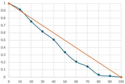 Orange line = ideal linear 'curve'