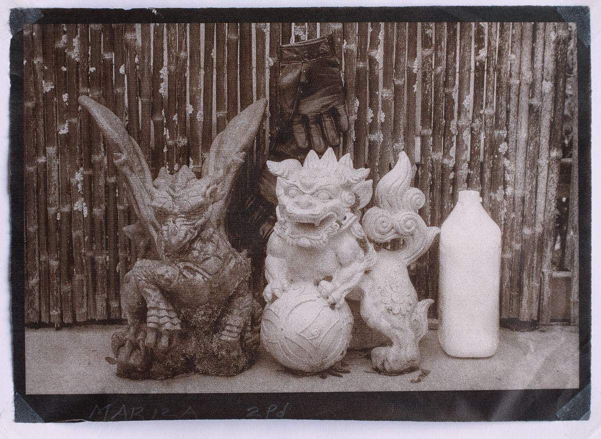 Palladium toned Argyrotype on 21gsm Gampi: (Jug handle there for pure white, glove shadows for pure black)