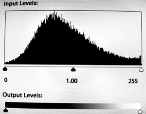 Here is the histogram from a 1mm square patch of sky fro the pic linked in post 138. This is after converting the scan of the 1mm sq to B/W using the same processing as with the original linked.