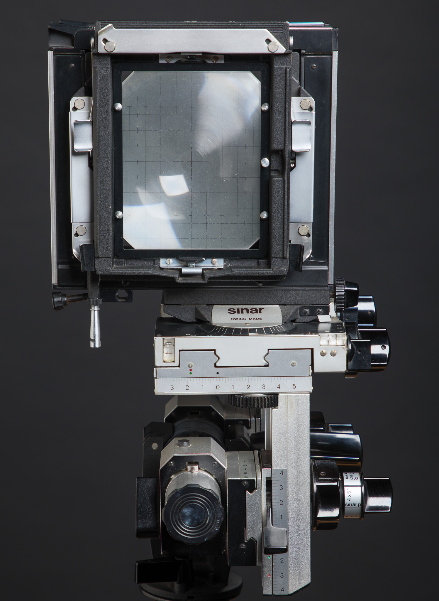 Sinar P view camera for 4x5 film, Part No. 491.26, including Fresnel Screen in holder, Part No. 461.76 and custom-built case for camera & Expert Kit accessories (available separately*).