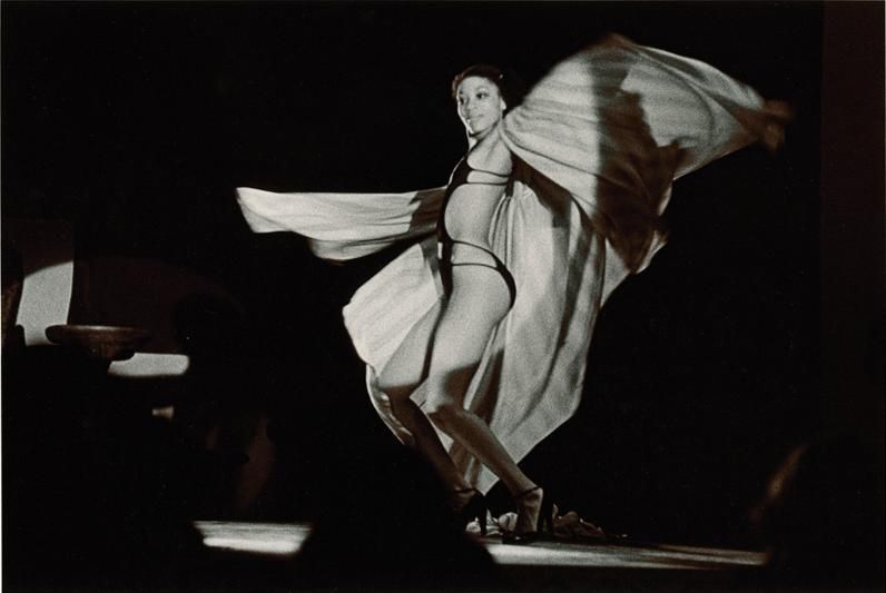 The second was made at a fashion show with the light provided by a followspot. The lens was most likely one of the old silver metallic barreled Canon 85mm LTM f/1.9's. I don't see any halation here. Of course, there could be some, but if so, it is slight and compensated by other factors.