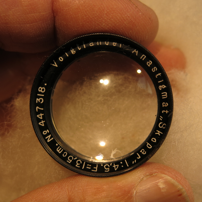 The front element of the Skopar 4,5/13,5cm on my Voigtländer Avus has the inside lens surfaces fogged. I thought I would be able to take it apart.. but then I read the manual!