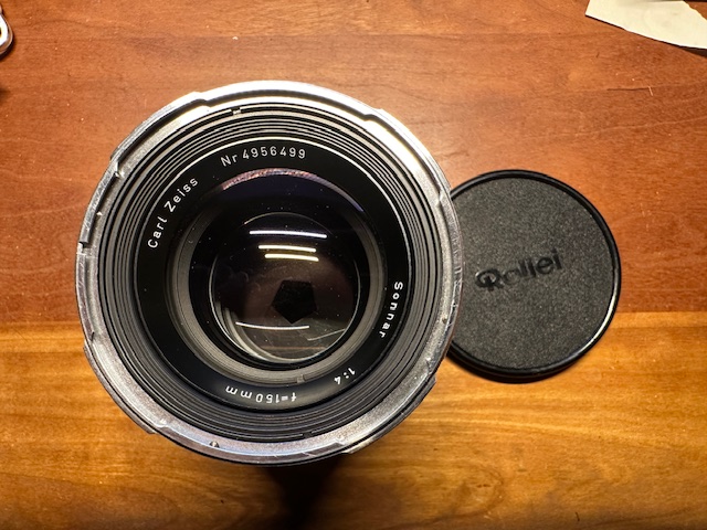 This is the version of the 150mm with a leaf shutter. 2025 CLA in Europe so all in working order. Clean glass. Uncommon lens, especially in this condition. Includes front and rear Rollei lens caps.