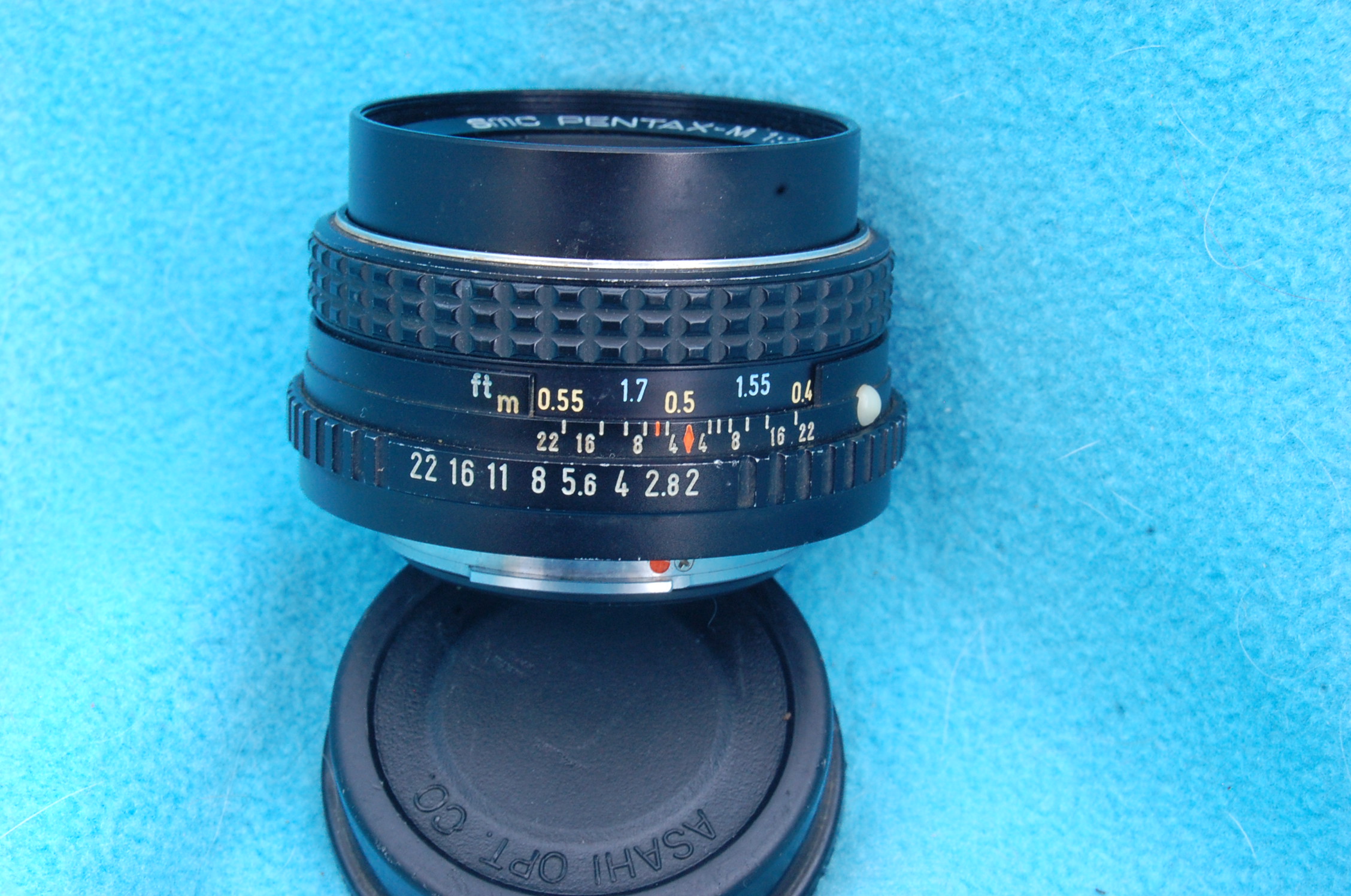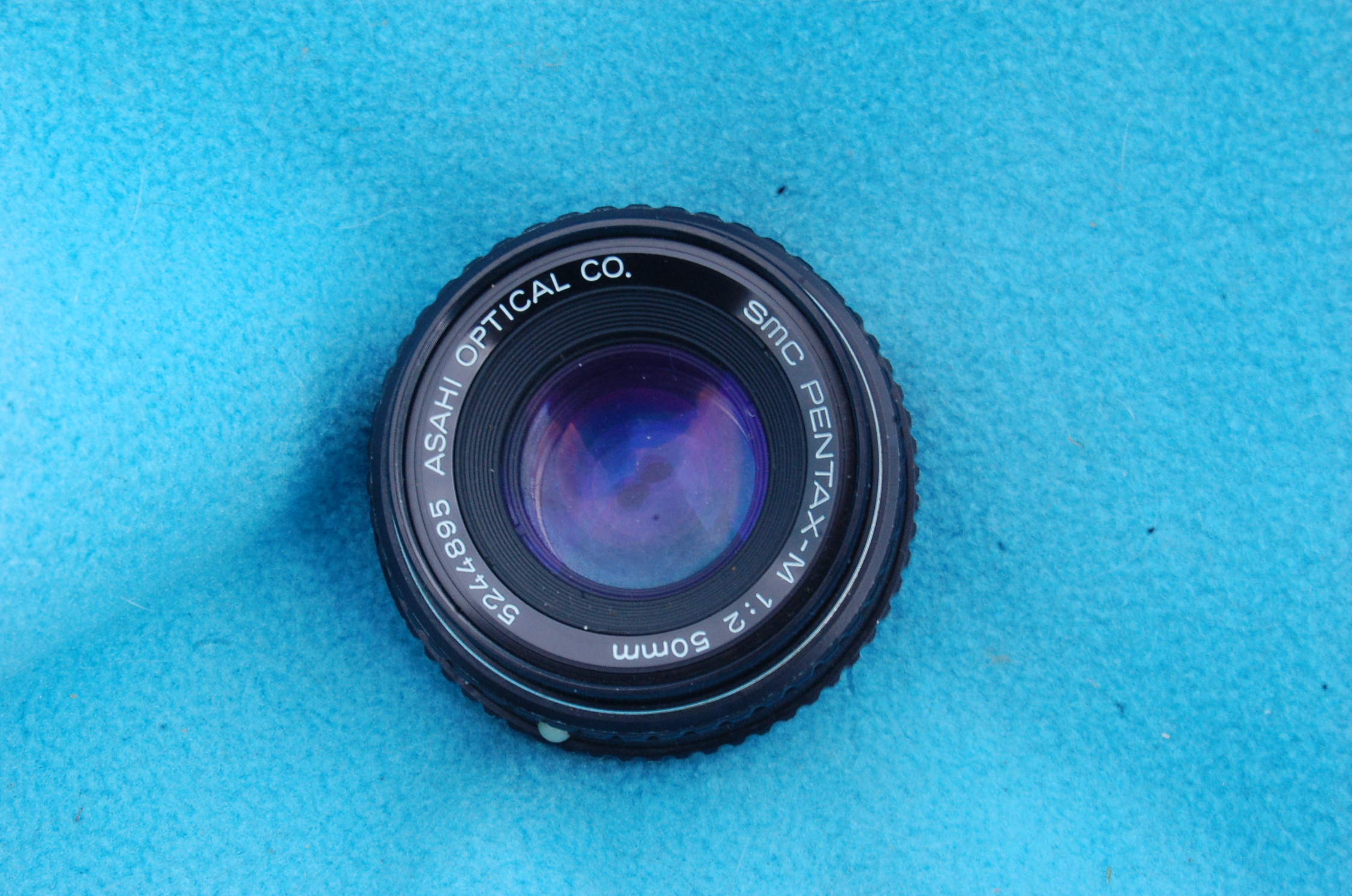 SMC Pentax-M 50mm f2 manual focus lens PK bayonet mount, original caps, minty, $30.