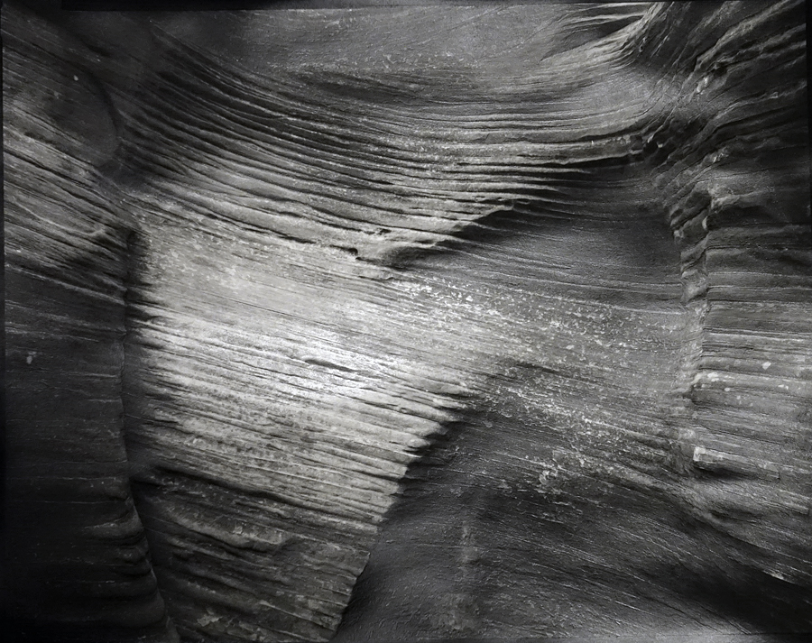 8x10 carbon print. Many Pools Canyon, Zion NP, 2018. This scene was not necessarily flat, my meter read 9 to 12, but I prefer much more contrast to match the process I use.