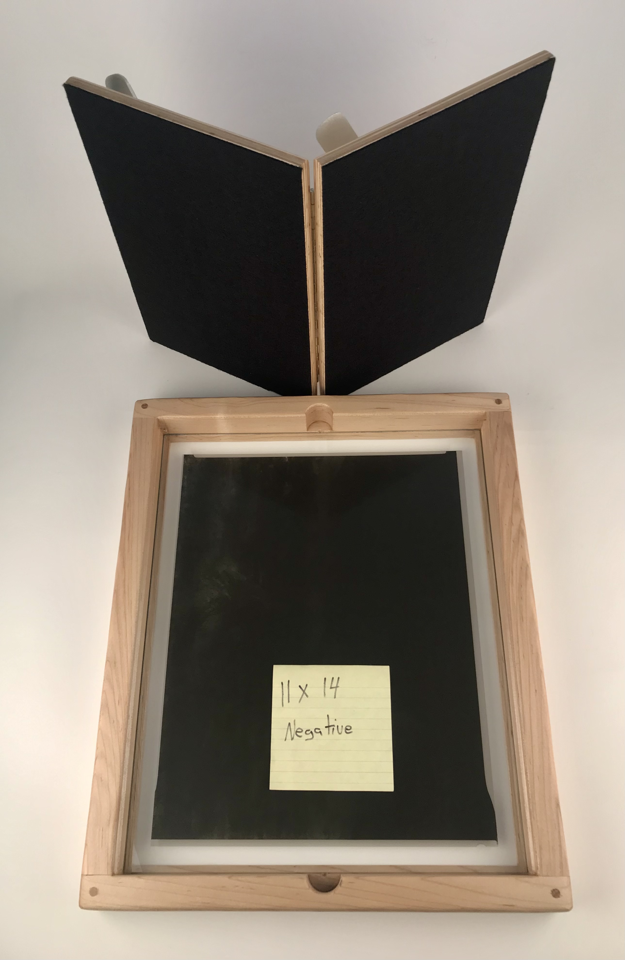 I have for sale a new 12x15 inch contact print frame. It is made from a beautiful Ambrosia Wormy Maple stock. Oak pinned Bridal joint corner construction. The pressure plate is made from 1/2 inch void free Baltic birch ply that has a felt pad. It is finished with 4 coats of satin polyurethane. A very rugged frame that should last a lifetime of printing. A perfect size for 11x14 or smaller contact printing. Sized perfectly if you use 22x30 inch art paper and cut it into 4 11x15 inch sheets for the various alt processes. Other sizes available if your needs require it, please inquire. Please let me know if you have any questions or need more pics.