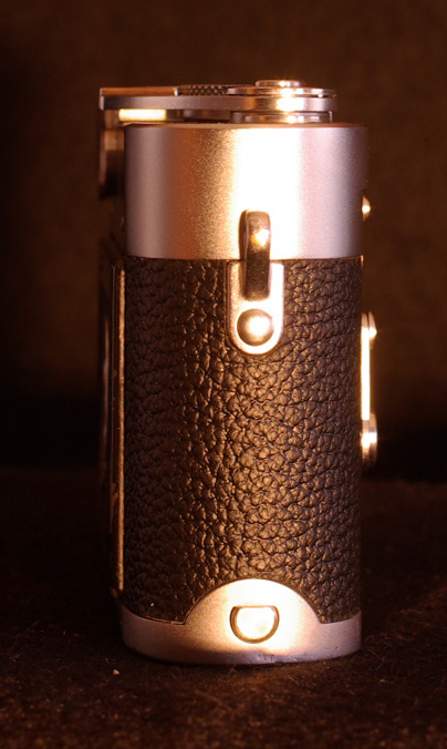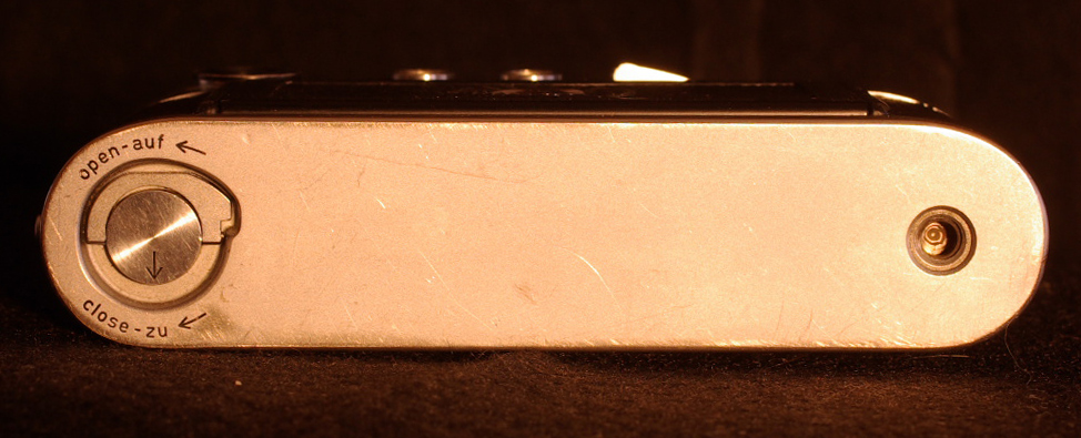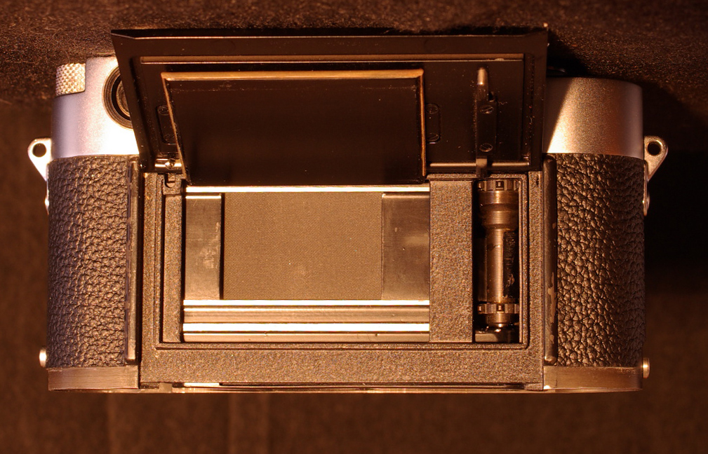 If my word means anything to anyone who is interested, the camera is very clean. There are no scratches in the chrome or the paint on the back door. There is a bit of minor scuffing on the bottom plate were it sits on a desk or table, as you expect from a camera this old but even that is pretty minor. There are scratches in the black paint on the underside of the back cover where it fits to the camera body but that is the only spot that shows an wear that I can tell. As I already mentioned, it was recovered last year so the cover is pristine. It is VERY smooth in operation and the shutter is VERY quiet, but since it was recently cleaned and adjusted I would expect nothing else.